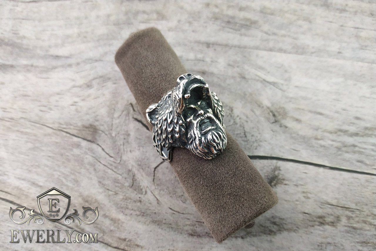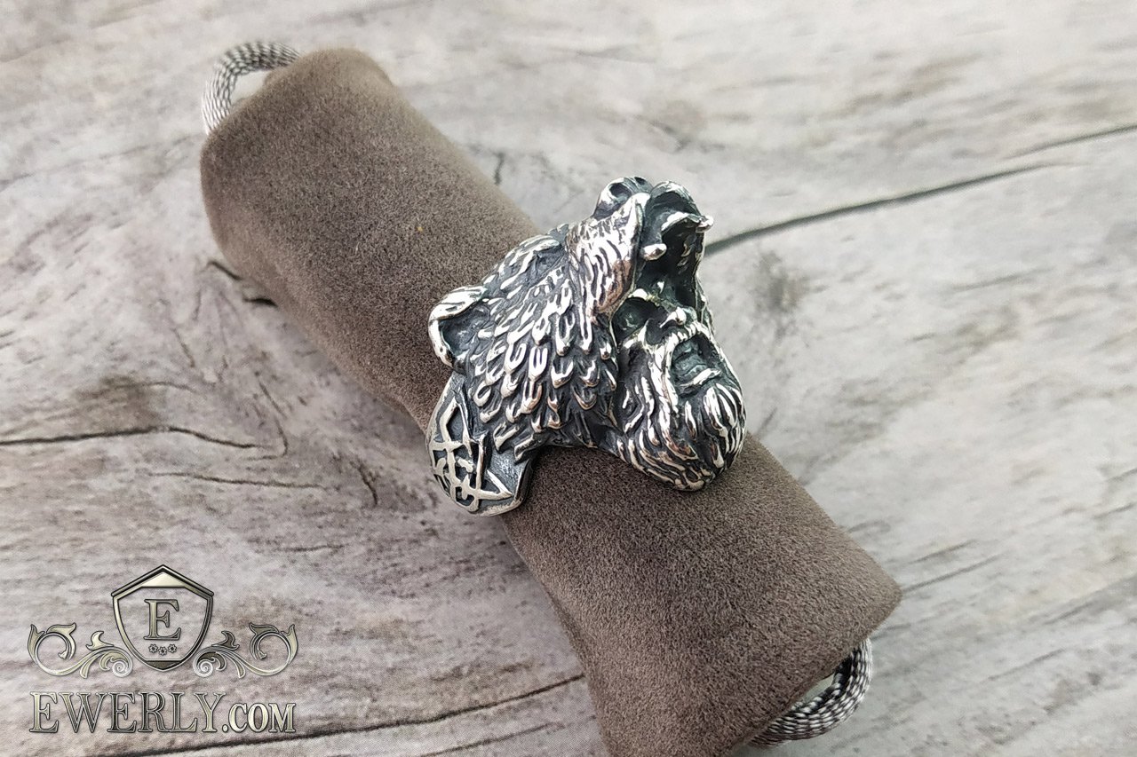На фото изображено мужское серебряное кольцо "Человек - медведь".