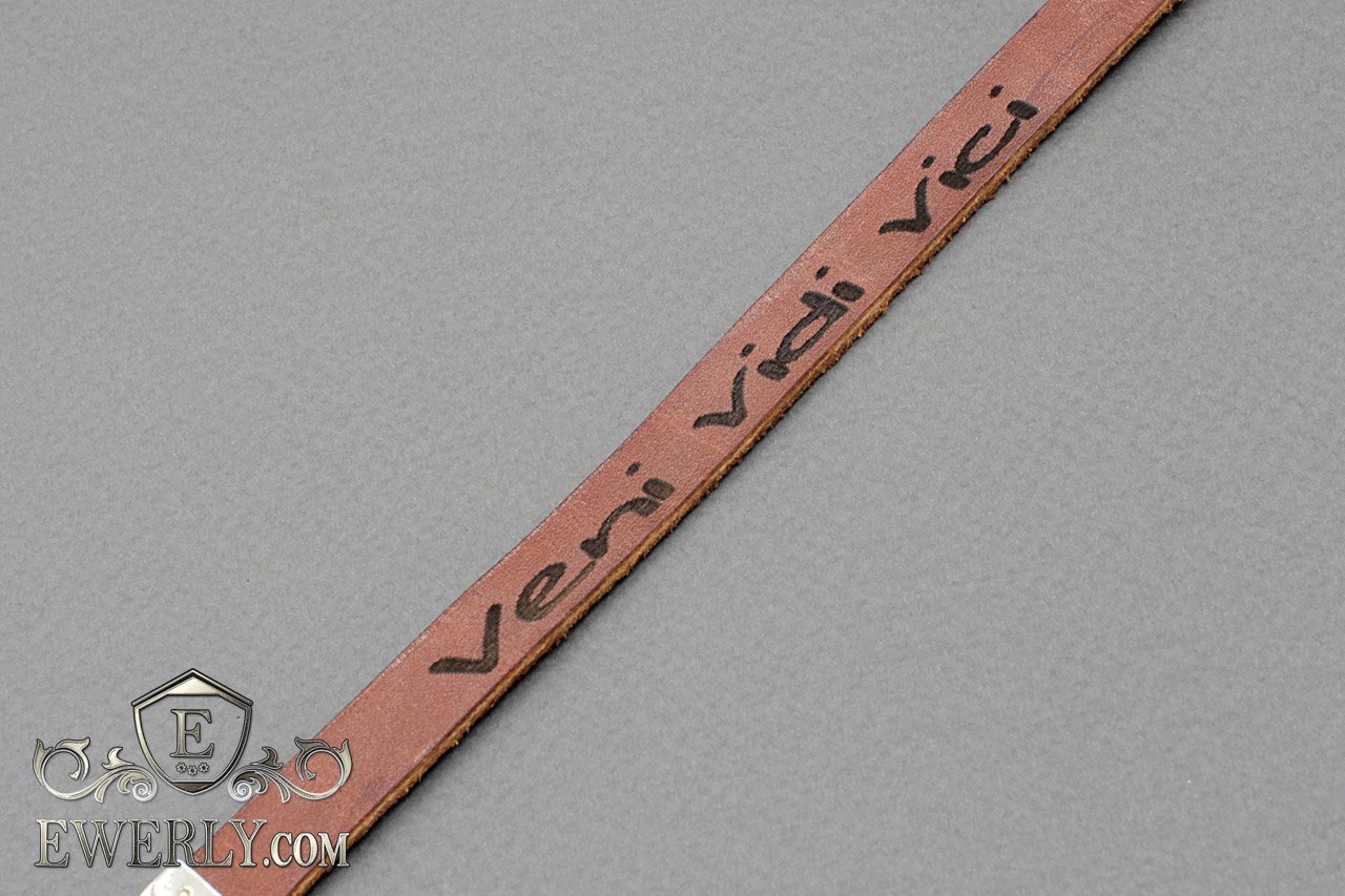 Браслет из коричневой кожи "Veni Vidi Vici" с серебряным замком