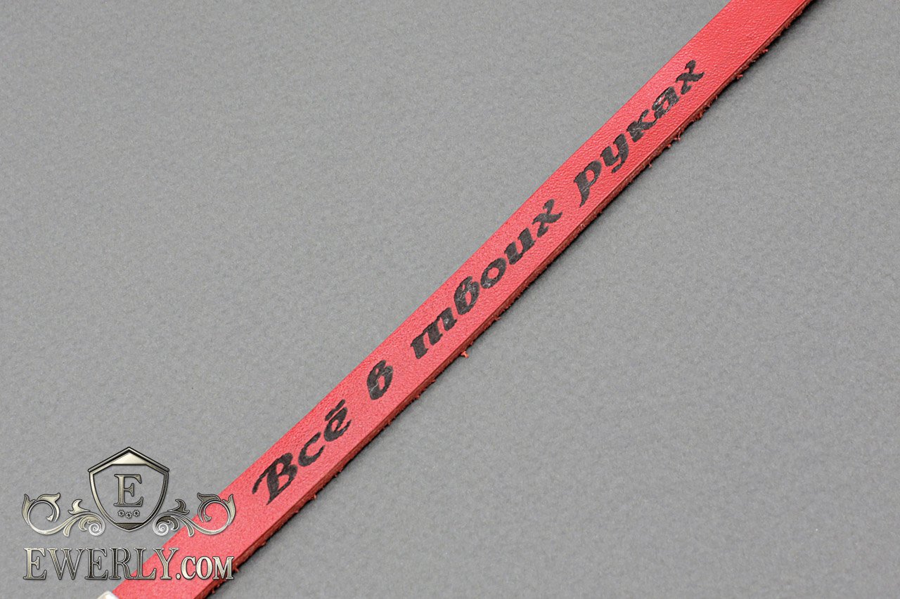 Подойдёт всем. Браслет из натуральной красной кожи с надписью "Всё в твоих руках" и серебряным замком.