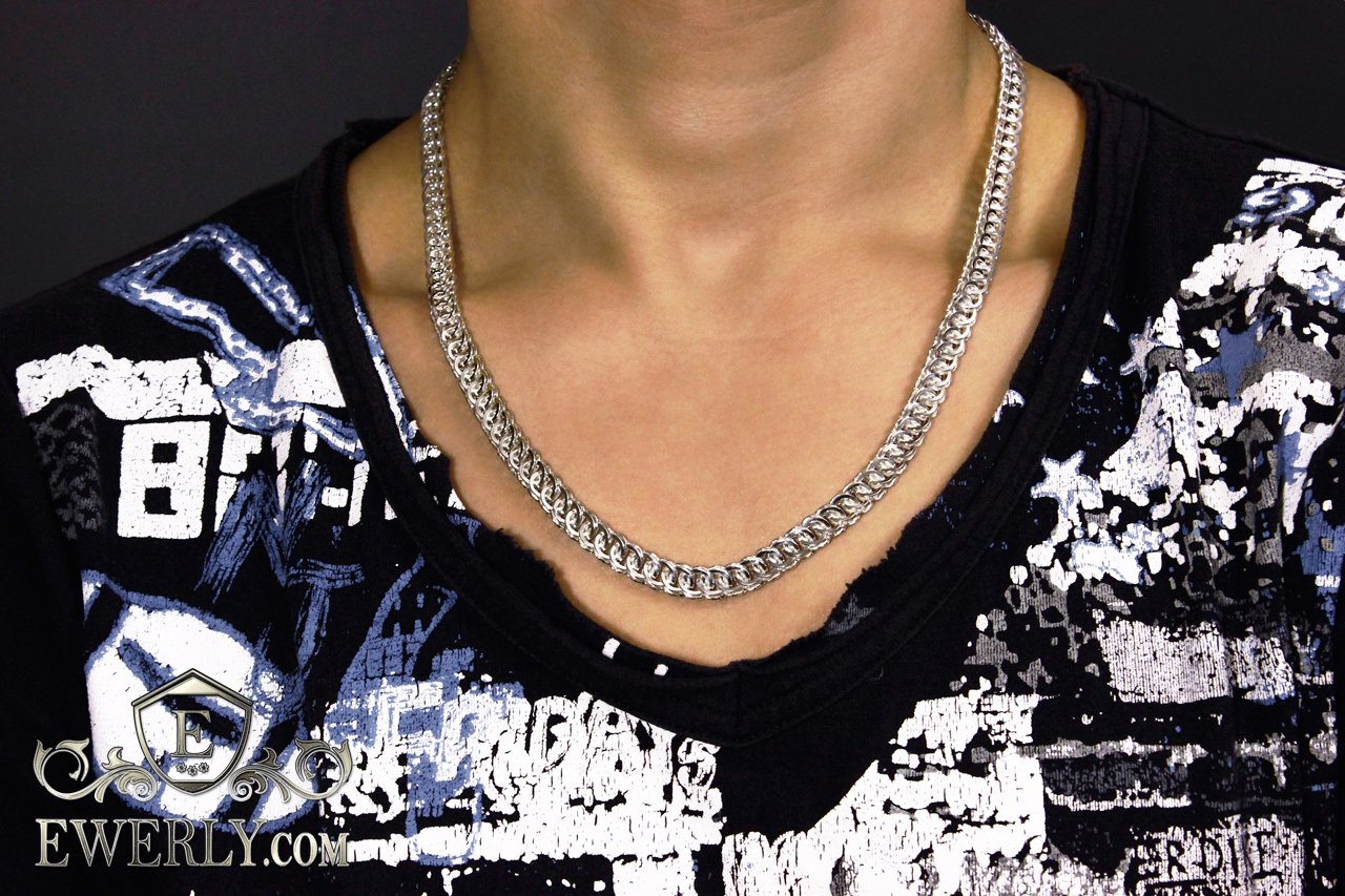 Полновесная серебряная цепочка на шею. Данное плетение достаточно трудоёмкое в исполнении, и большинство ювелиров не обладают достаточным уровнем навыков в изготовлении, чтобы достичь высокого качества украшений, не говоря уже о том, чтобы просто изготовить. На текущий момент качество наших работ из этого плетения существенно превосходит большинство других производителей.