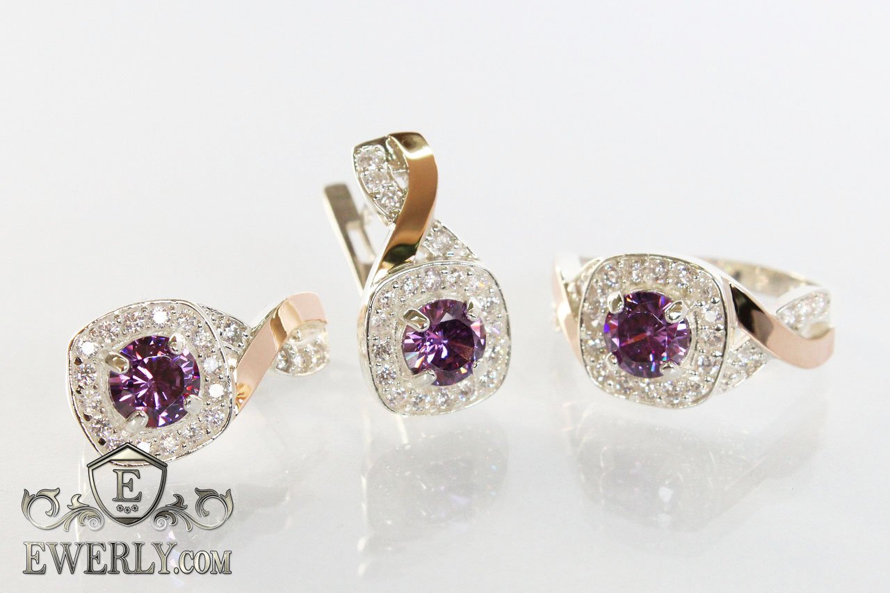 Set : earring of sterling silvers and ring of sterling silver 0015VF