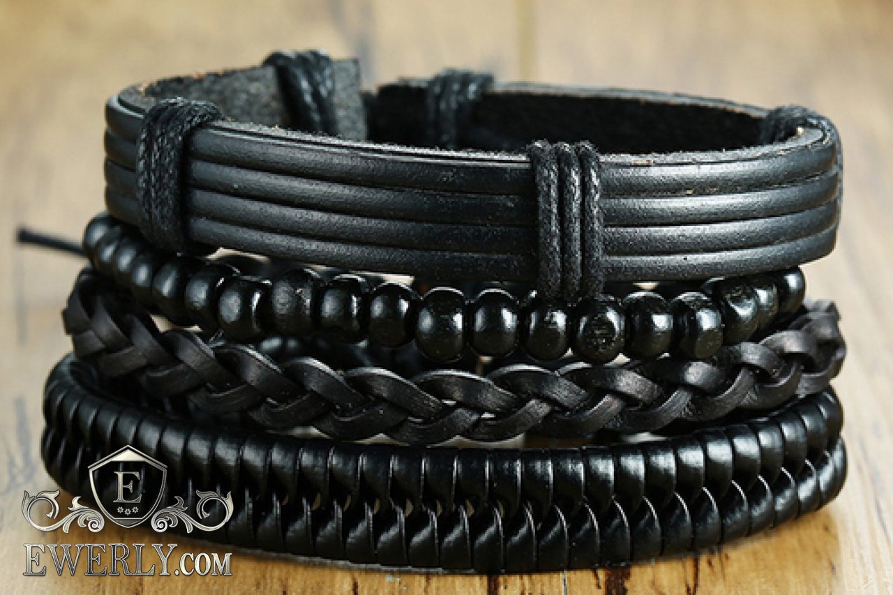 Three leather bracelets with adjustable cord and one stone bracelet.Similar items