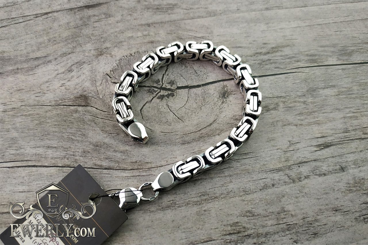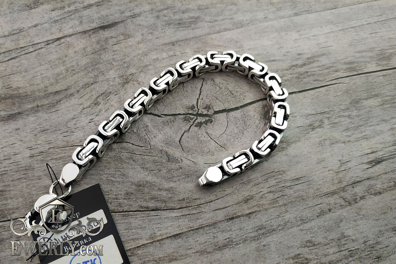 Video in HD quality - Thick bracelet "David" of silver for men