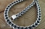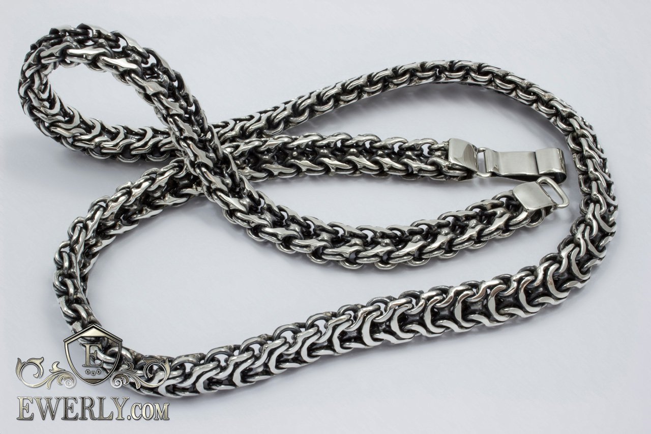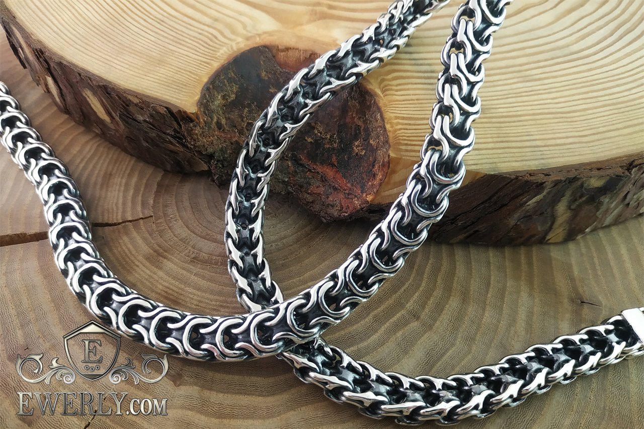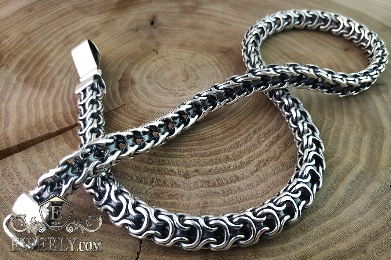 The photo of sterling silver chain, shown on the current page, shows how two different weaves, each of which in itself is unique and inimitable, are perfectly combined in one piece of jewelry. On one side of the chain the rare “Ramses” weave is clearly visible, and on the other side there is an equally rare and exclusive “Double Stream” weave.