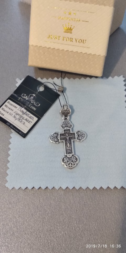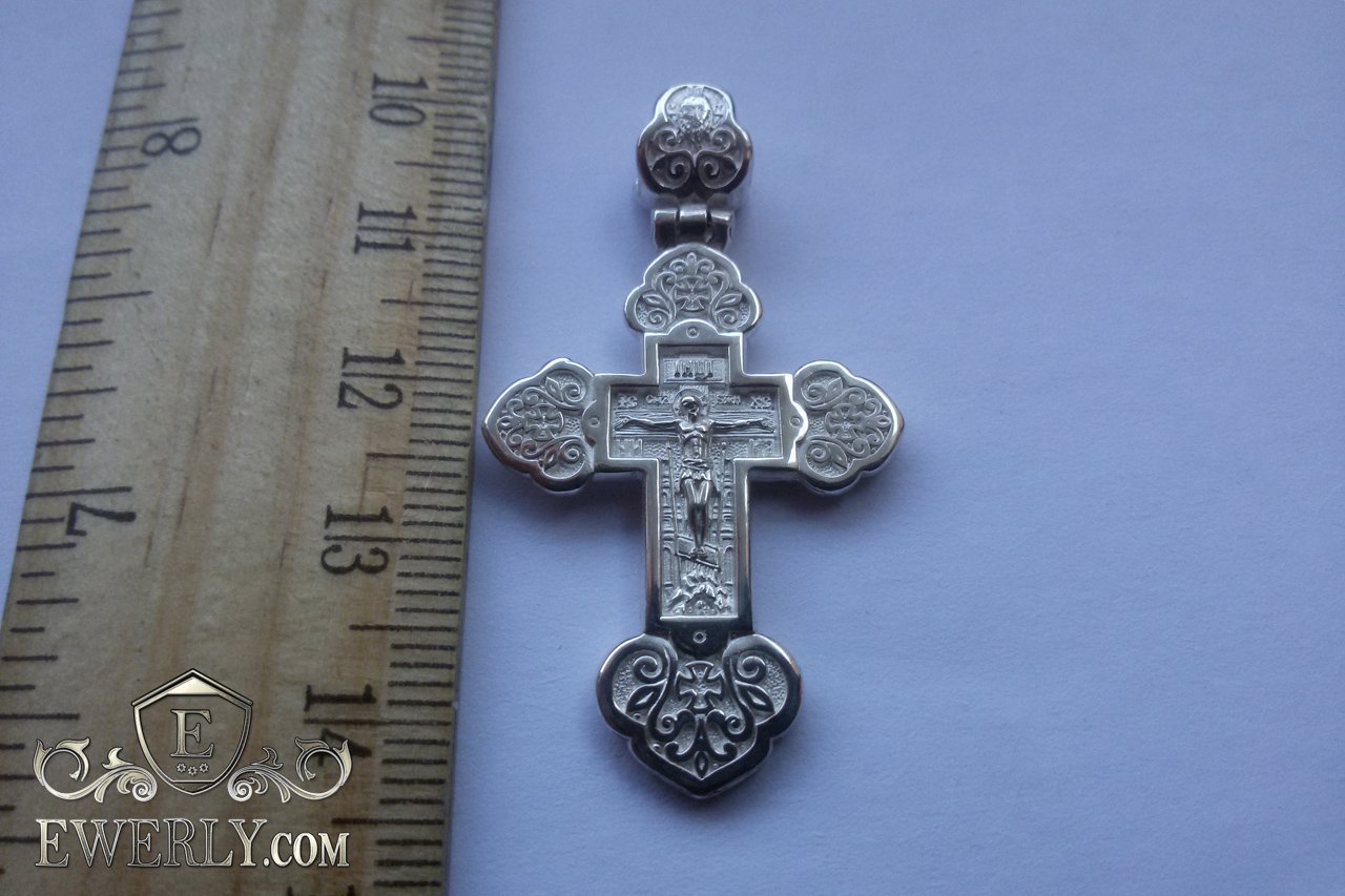 In the photo: The crucifixion of Christ. Archangel Michael. Silver orthodox cross. Length: 3.3 cm