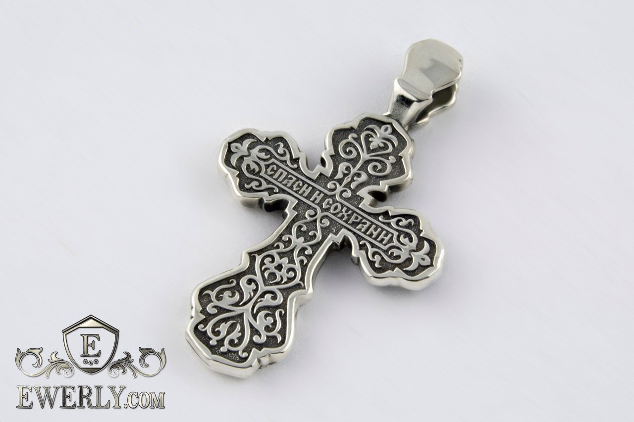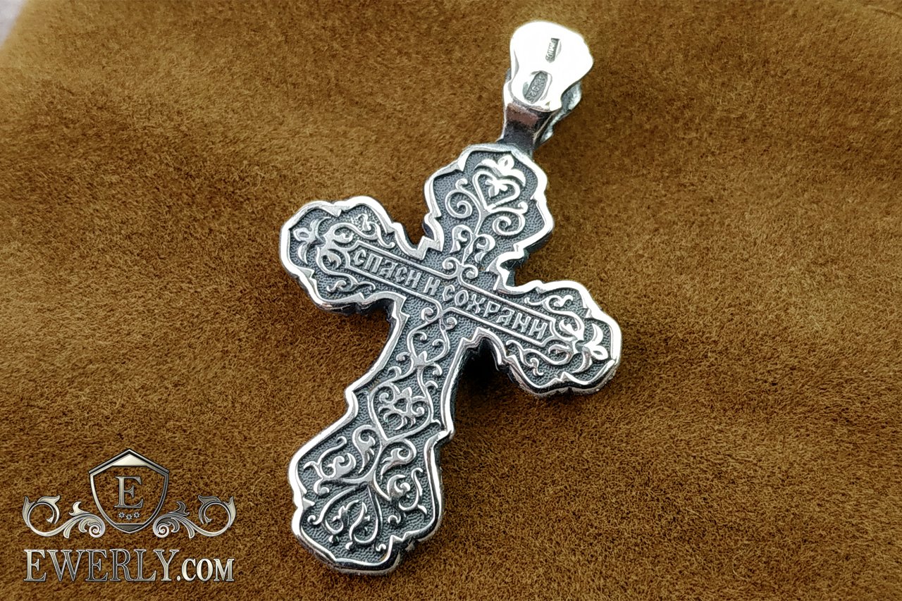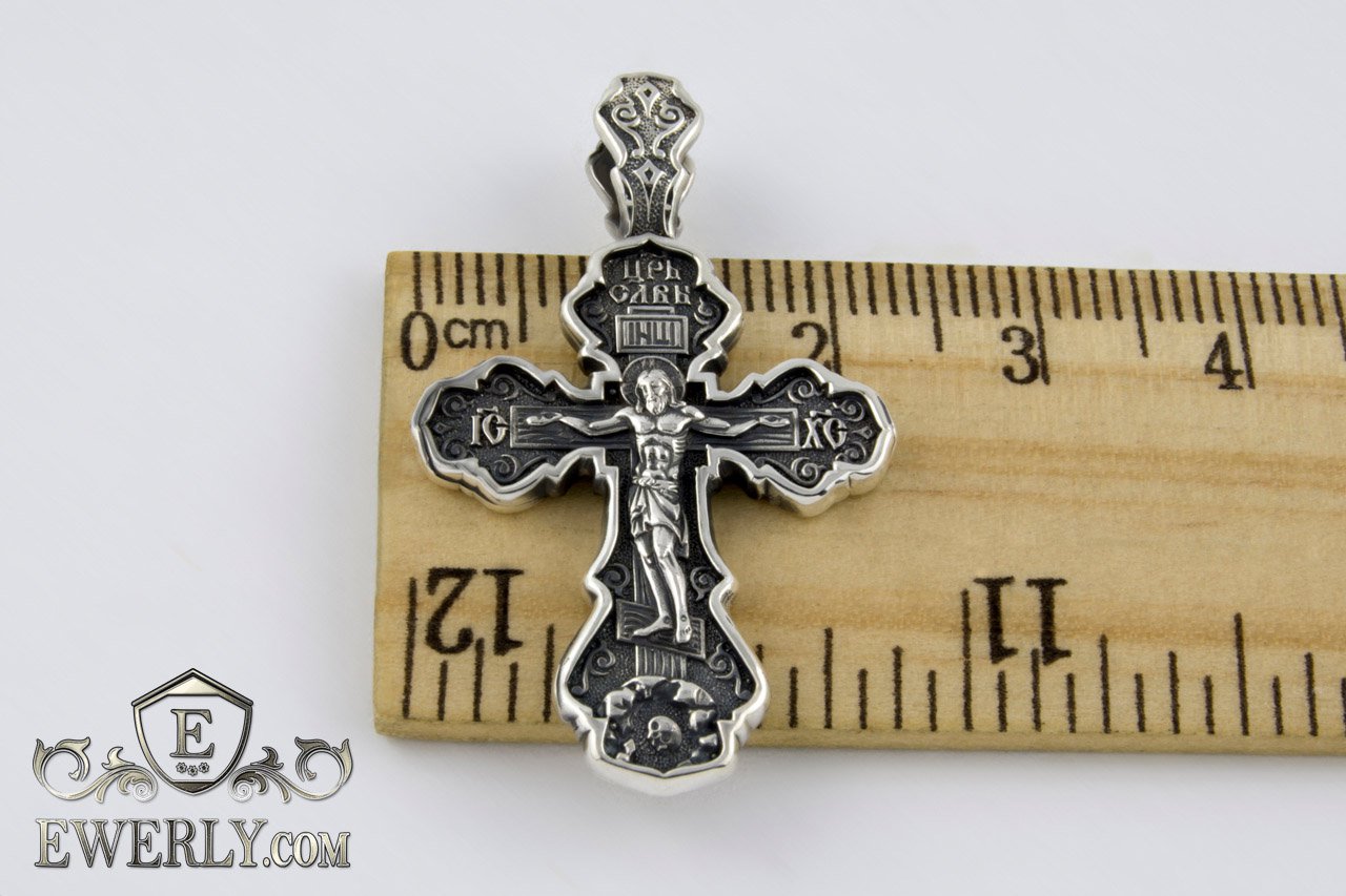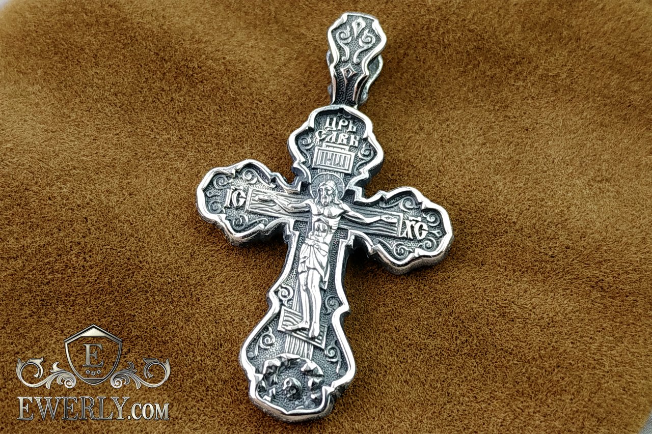 Orthodox cross made of silver with blackening. The crucifixion of Christ.Height: 5.5 mm