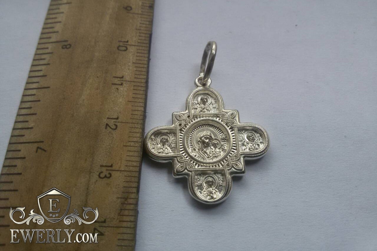 In the photo: Orthodox cross without crucifixion. The God Almighty. Kazan icon of the Mother of God and eight saints. Length: 2.5 cm