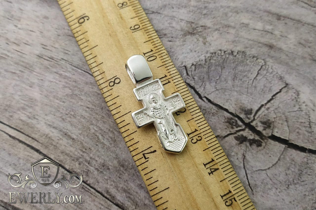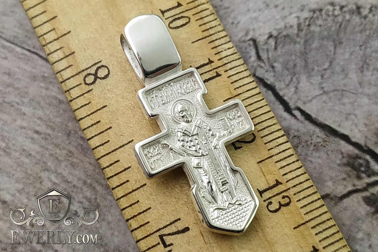 Men's pectoral orthodox silver cross. The crucifixion of Christ. Height: 6 mm