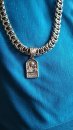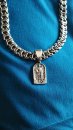 The photo shows a men's ring made of silver with a Guardian Angel. This ring is made of 925 sterling silver with a dark green Jasper stone. On the rim of the ring is the inscription “there is no man without an angel and no righteous man without a guide”. The size of the ring can be chosen according to your wishes so that it fits your hand perfectly.