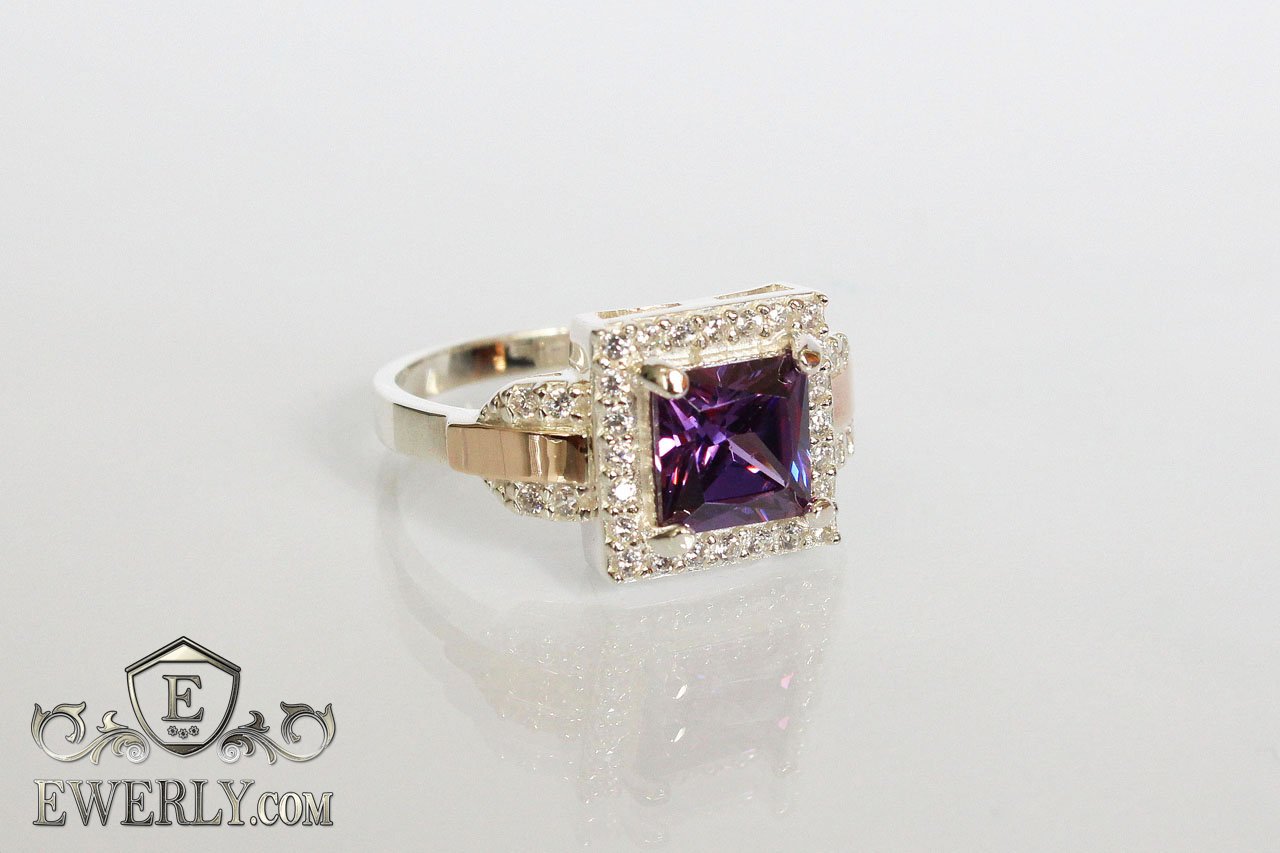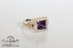 Women's Silver ring with square cubic zirconia of amethyst (purple) color