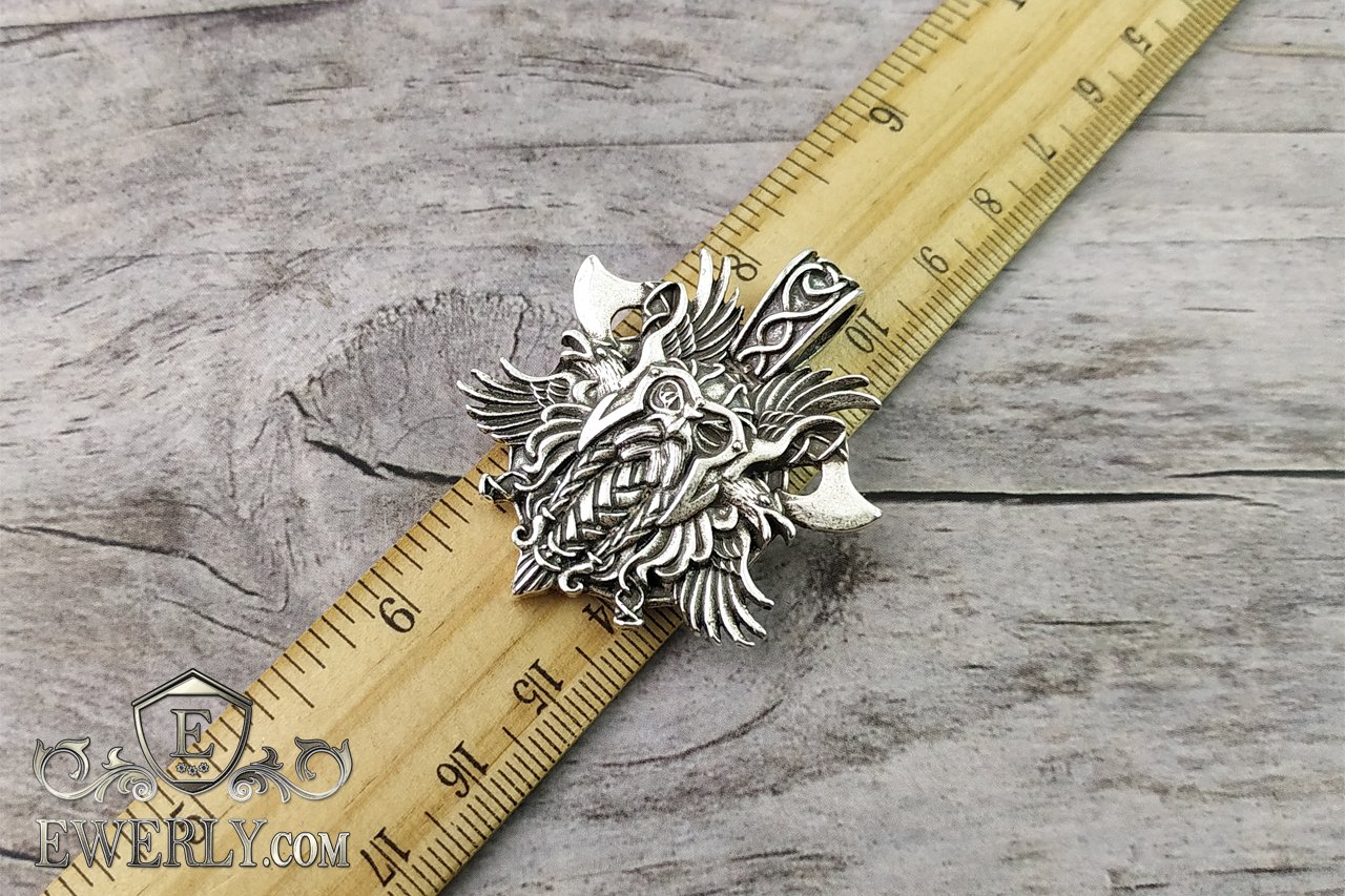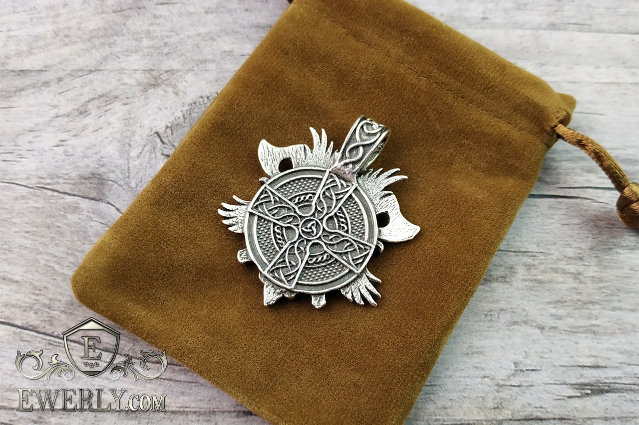 Large men's silver pendant "Viking amulet" made of 925 sterling silver with blackening.