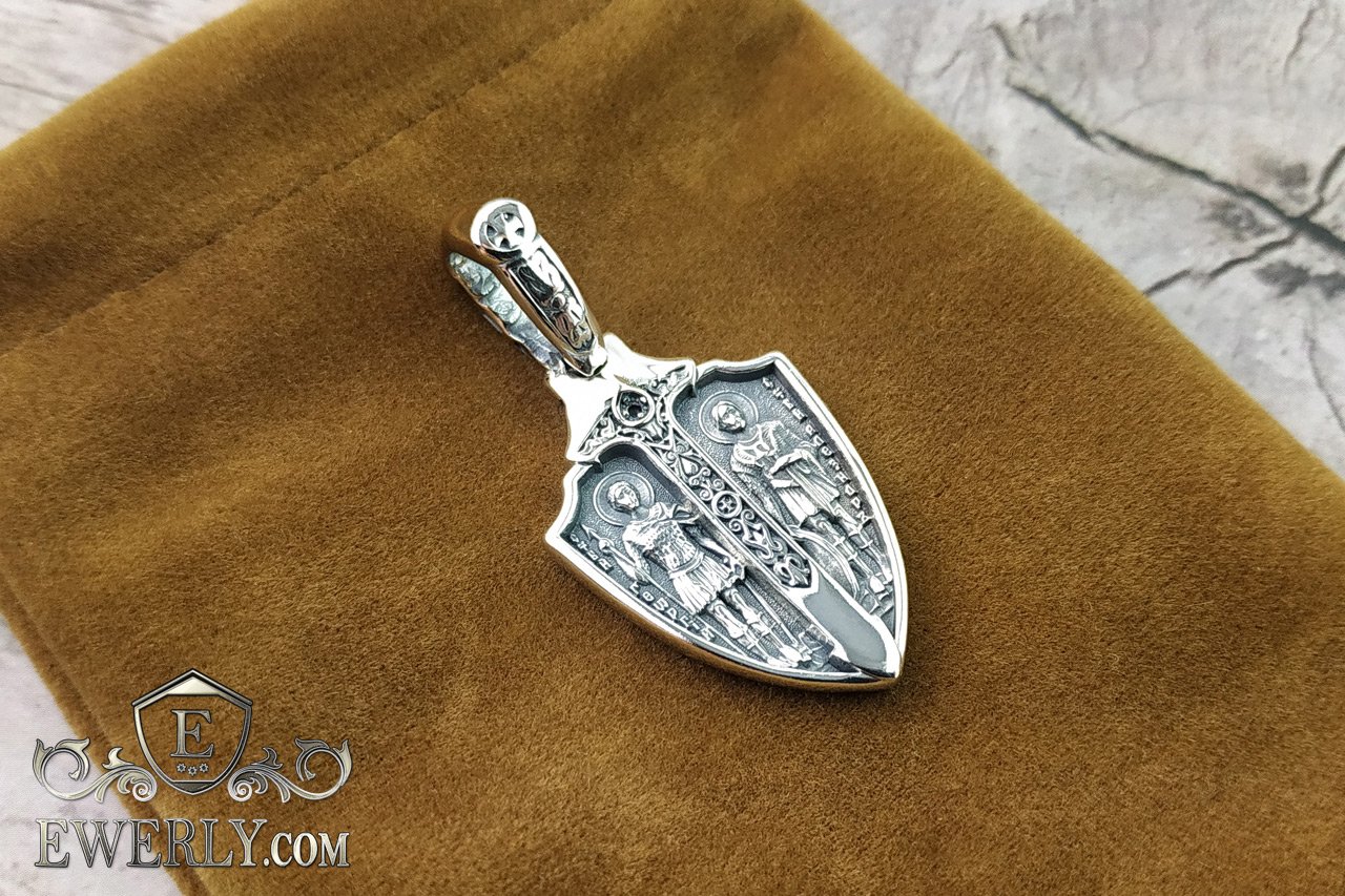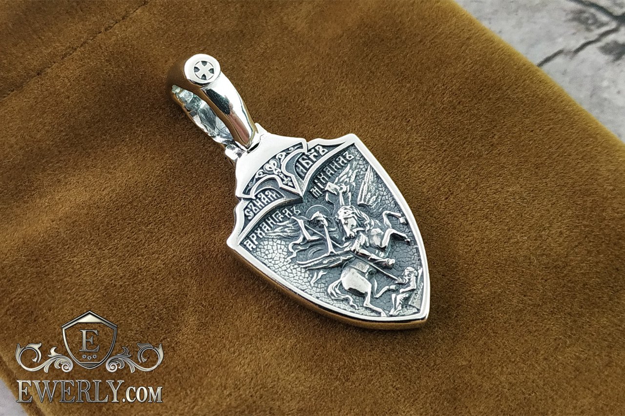 Silver pendant a shield with the Archangel Michael, this incense is made of silver with blackening.