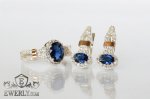 Женский набор: серёжки и кольцо из серебра 925 пробы с золотом 375 пробы и камнями - синими фианитами.