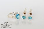 Серёжки и кольцо из серебра с золотом и светло-голубыми камнями