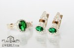 Женский набор: серёжки и кольцо из серебра 925 пробы с золотом 375 пробы и камнями - зелёными фианитами.
