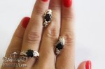 Серёжки и кольцо из серебра с золотом и чёрными камнями для девушек
