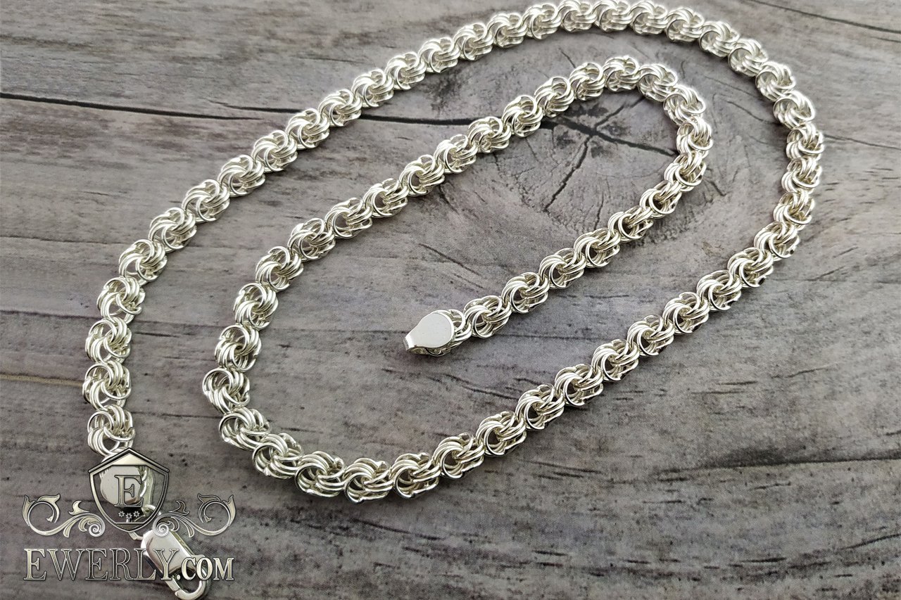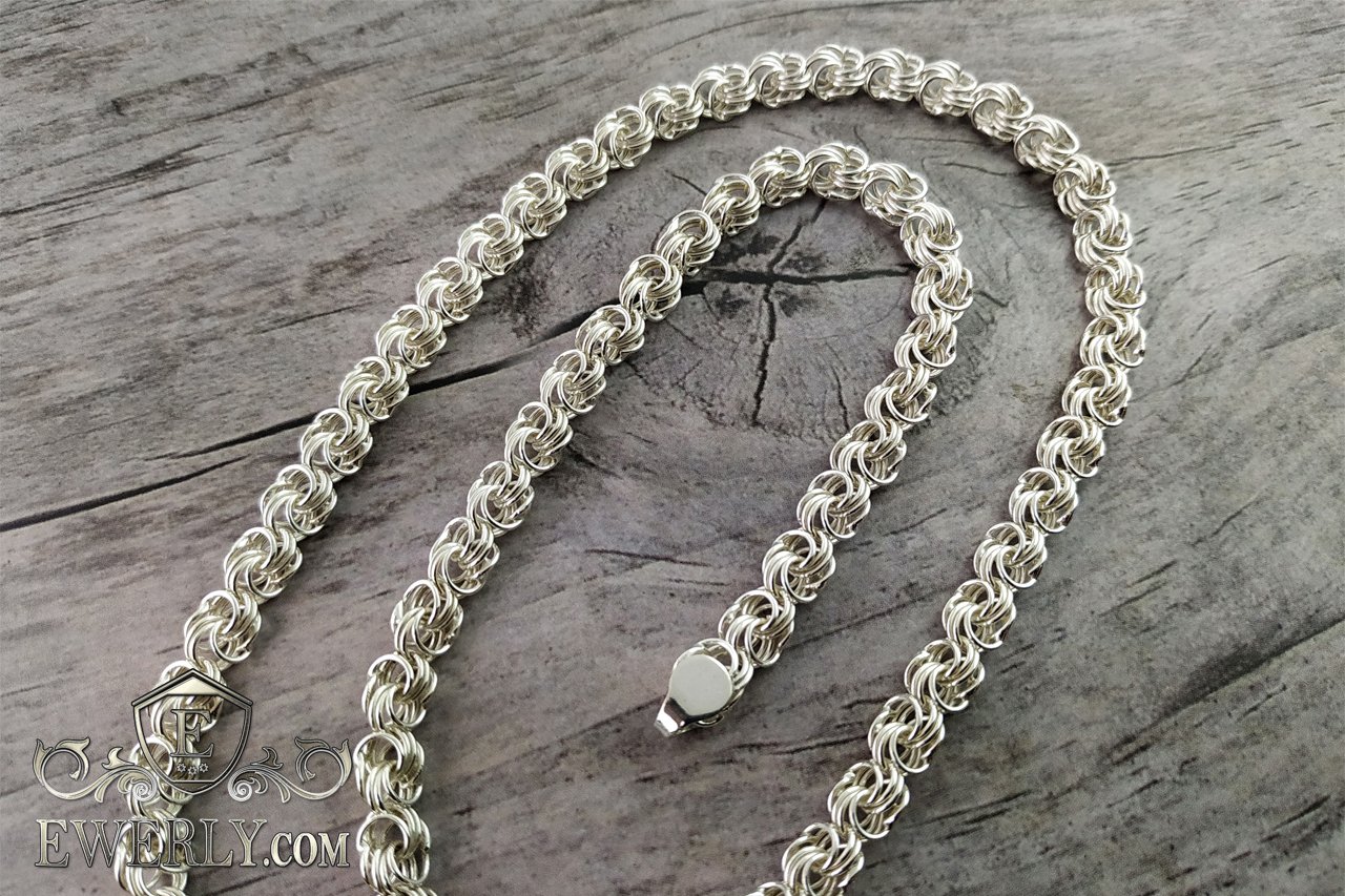 Полновесная цепочка. На фото изображена женская серебряная цепочка из плетения ручной работы под названием «Роза». Высота цепочки на фото около 4 мм.