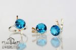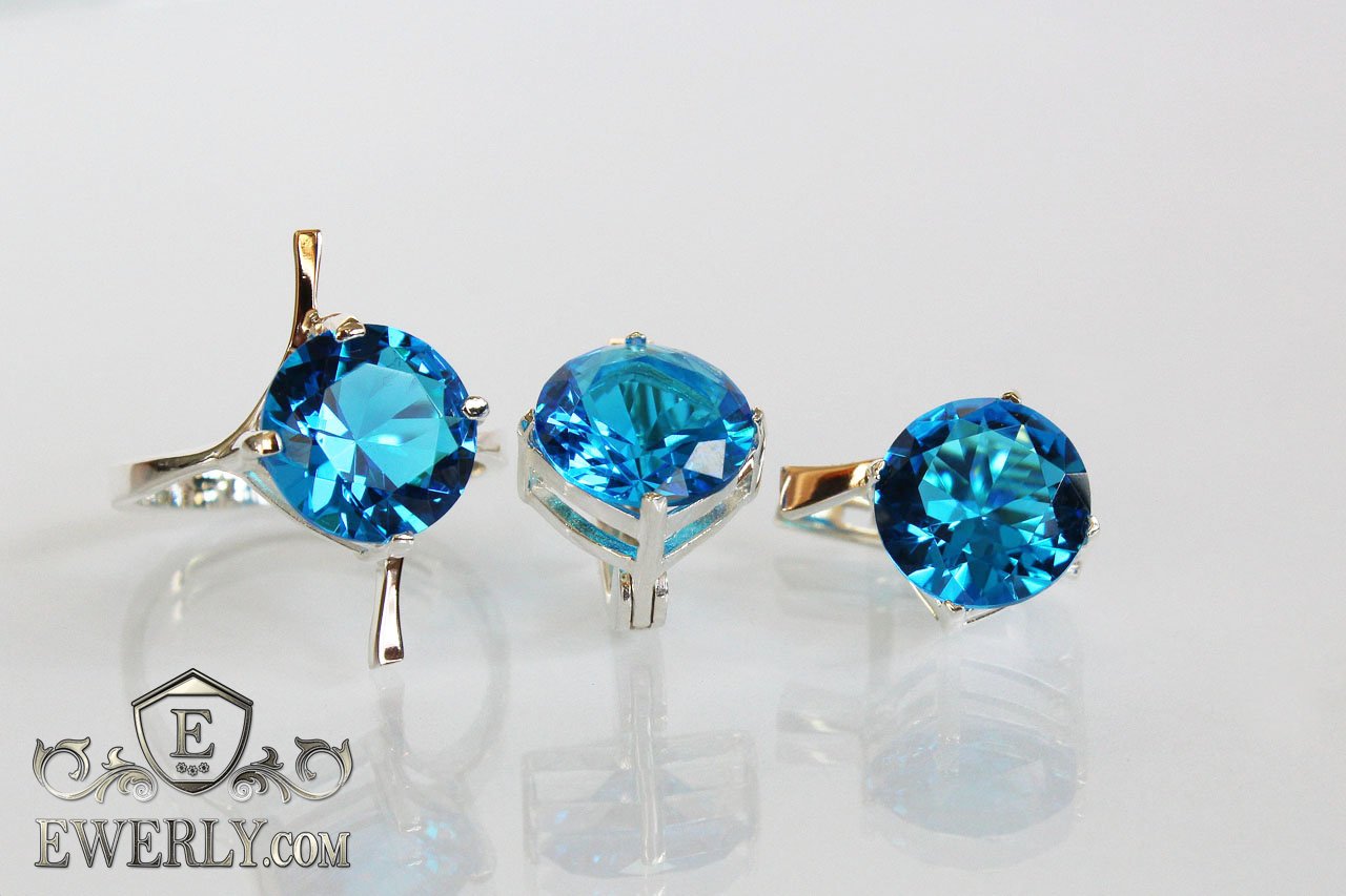 Женский набор: серебряное кольцо и серёжки с голубыми камнями