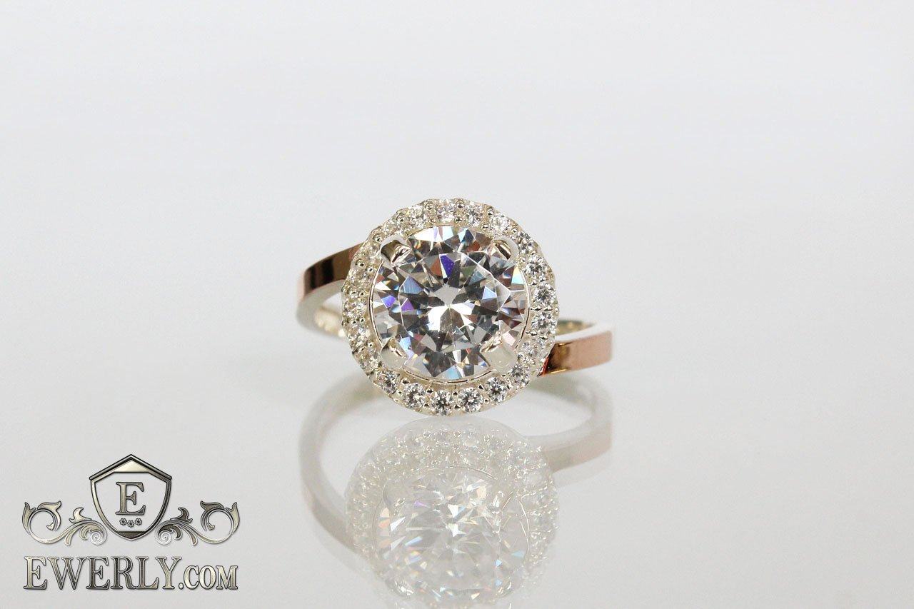Женское серебряное кольцо 925 пробы с золотыми пластинами 375 пробы с белым камнем.
