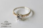 Женское серебряное кольцо 925 пробы с золотыми пластинами 375 пробы с фианитом (белый цвет).