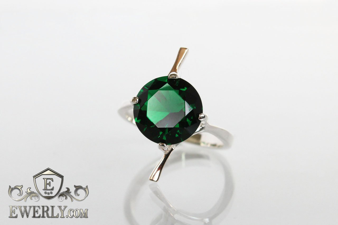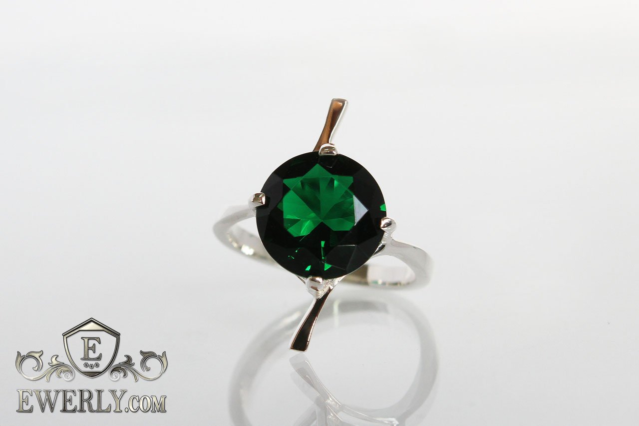 Женское кольцо из серебра с зелёным камнем (фианит)