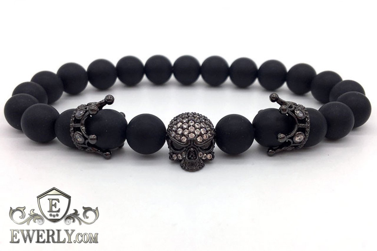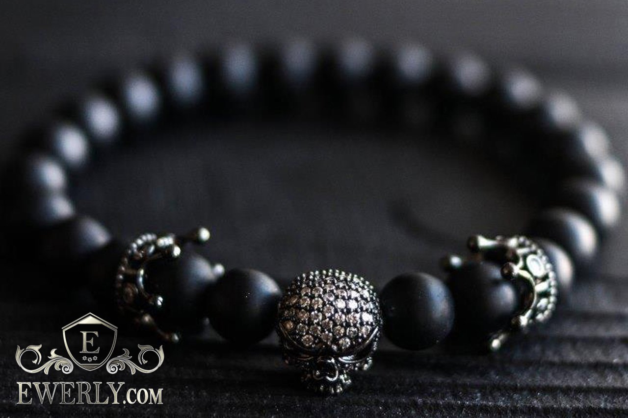 Каменный браслет чёрный матовый на руку для мужчины 123016JY