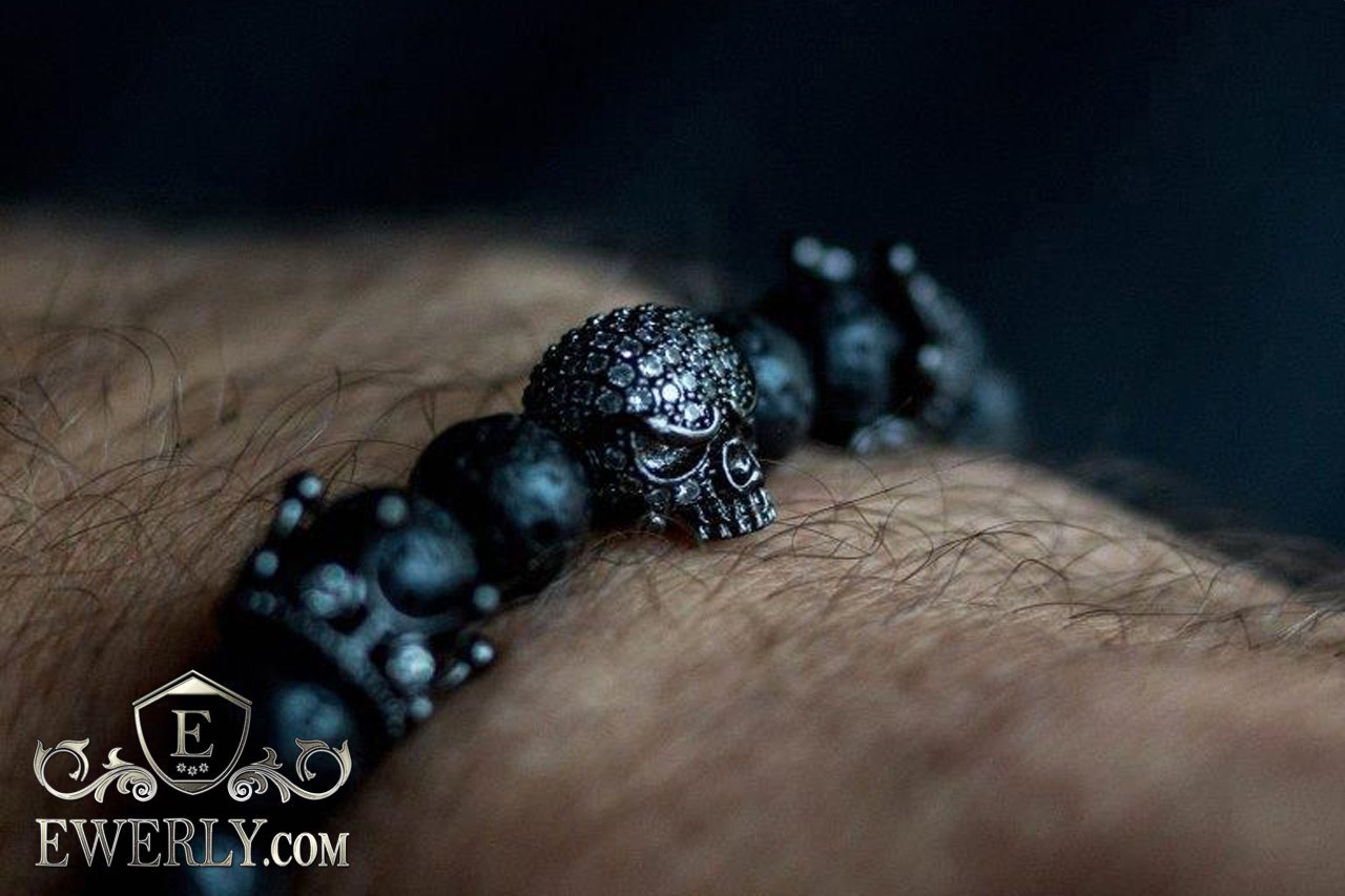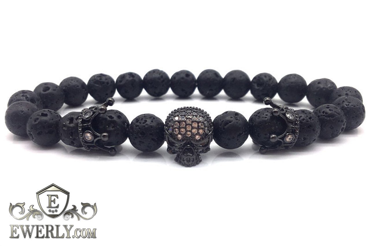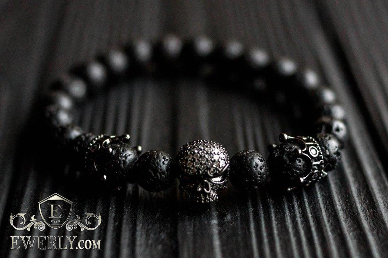 Браслет из вулканического камня для мужчины чёрный 123017BS