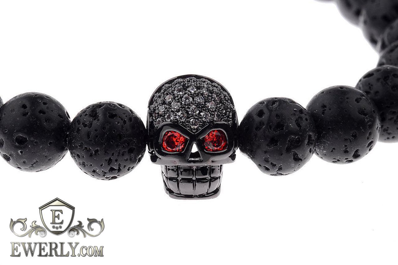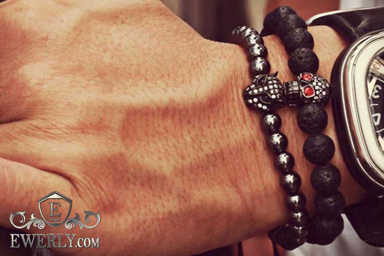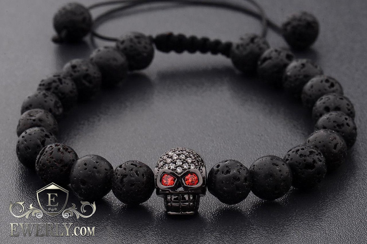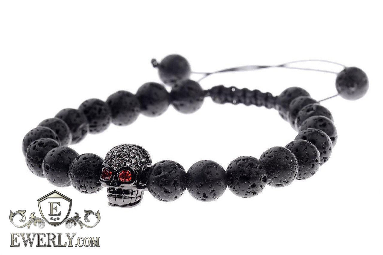 Мужской браслет чёрный из камня - Вулканит 123018AD