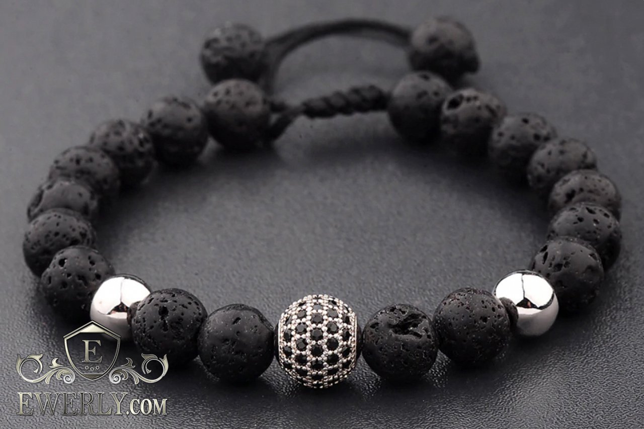 Каменный браслет (Вулканит + иммитация серебра) 123055JC