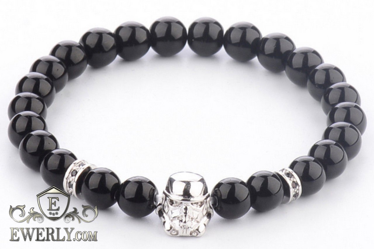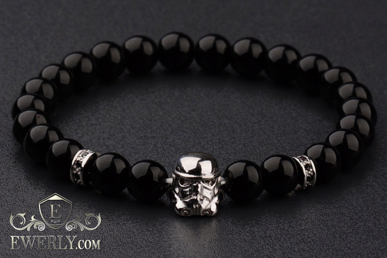 Мужской каменный браслет - камень Вулканит на руку 123039RX