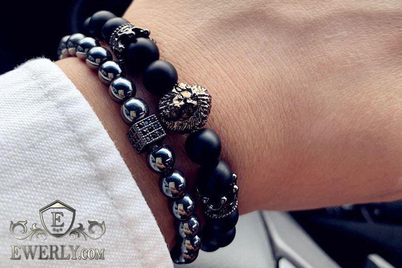 Комплект мужских браслетов из камня вулканит на руку 123062II