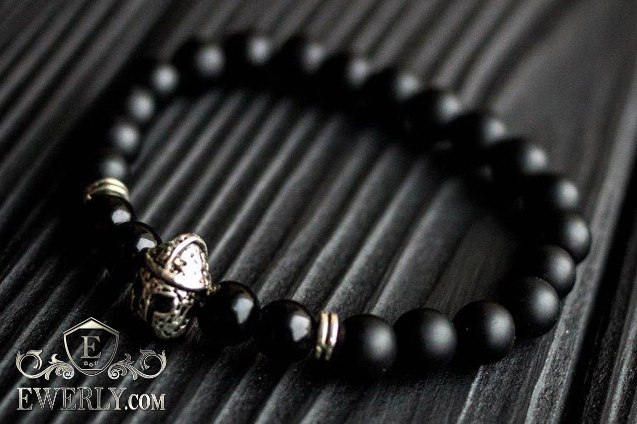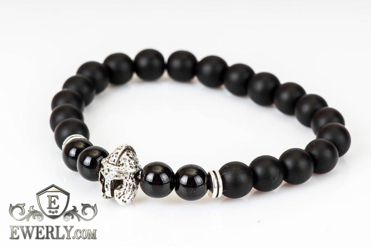Мужской каменный браслет с металлическим шлемом 123026IA