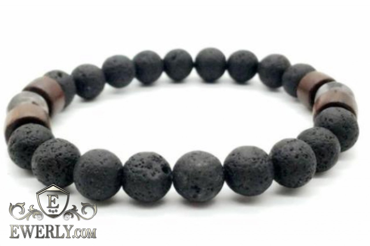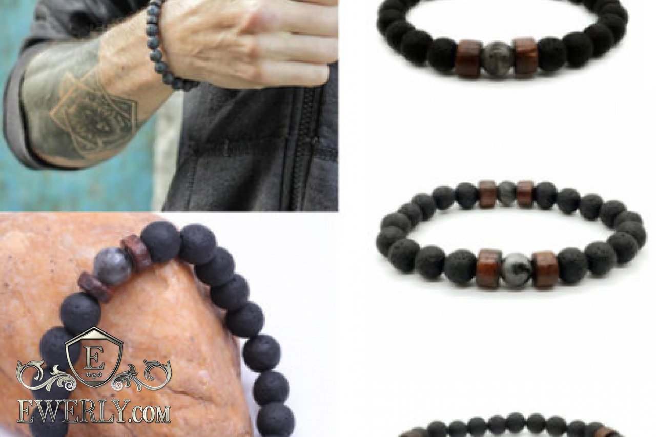 Каменный браслет - камень вулканит для мужчины на руку 123033MC