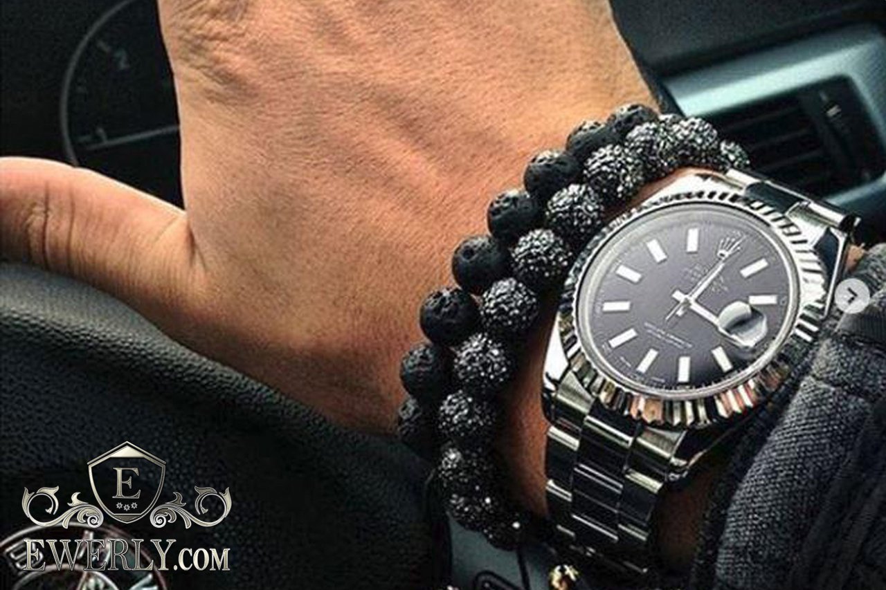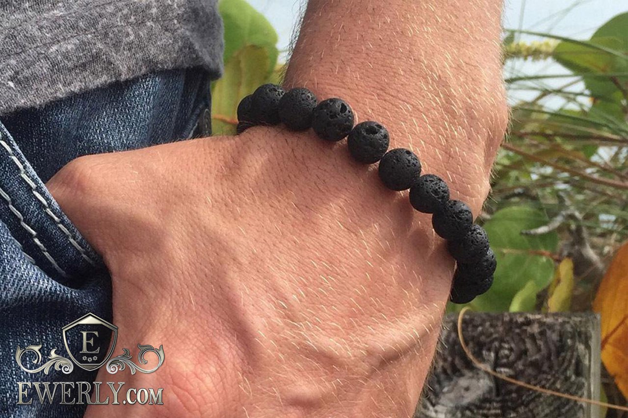 Мужской браслет из натурального камня - вулканит 123027ZC