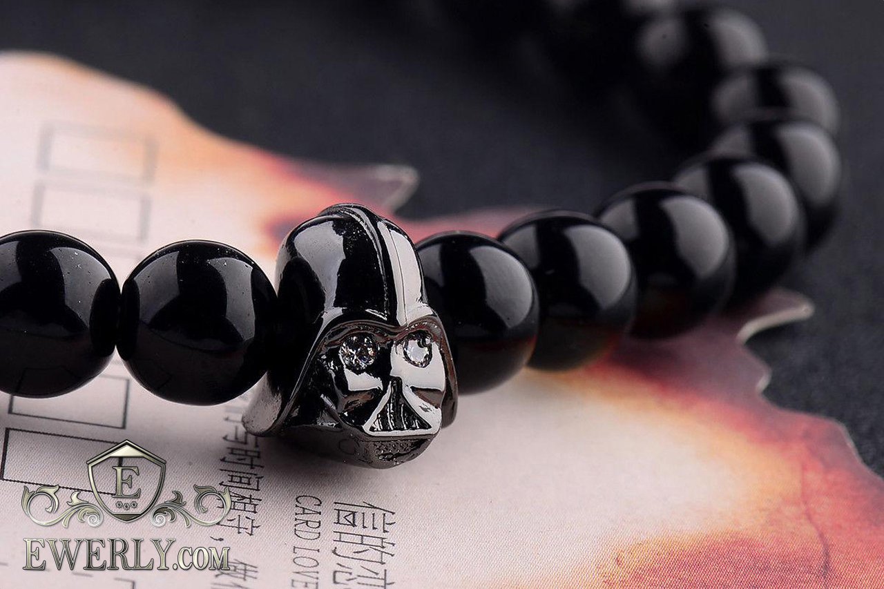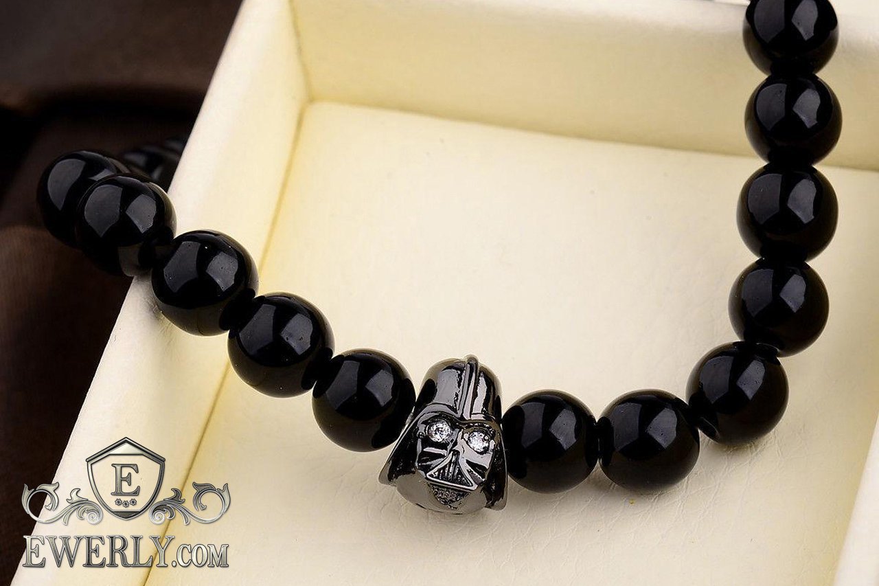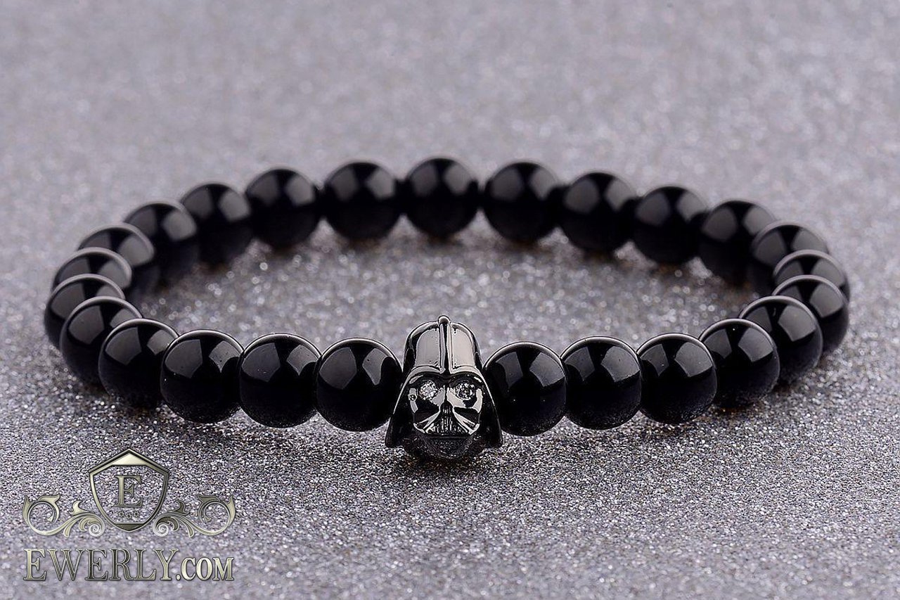 Мужской браслет из лавового камня чёрный 123043DZ