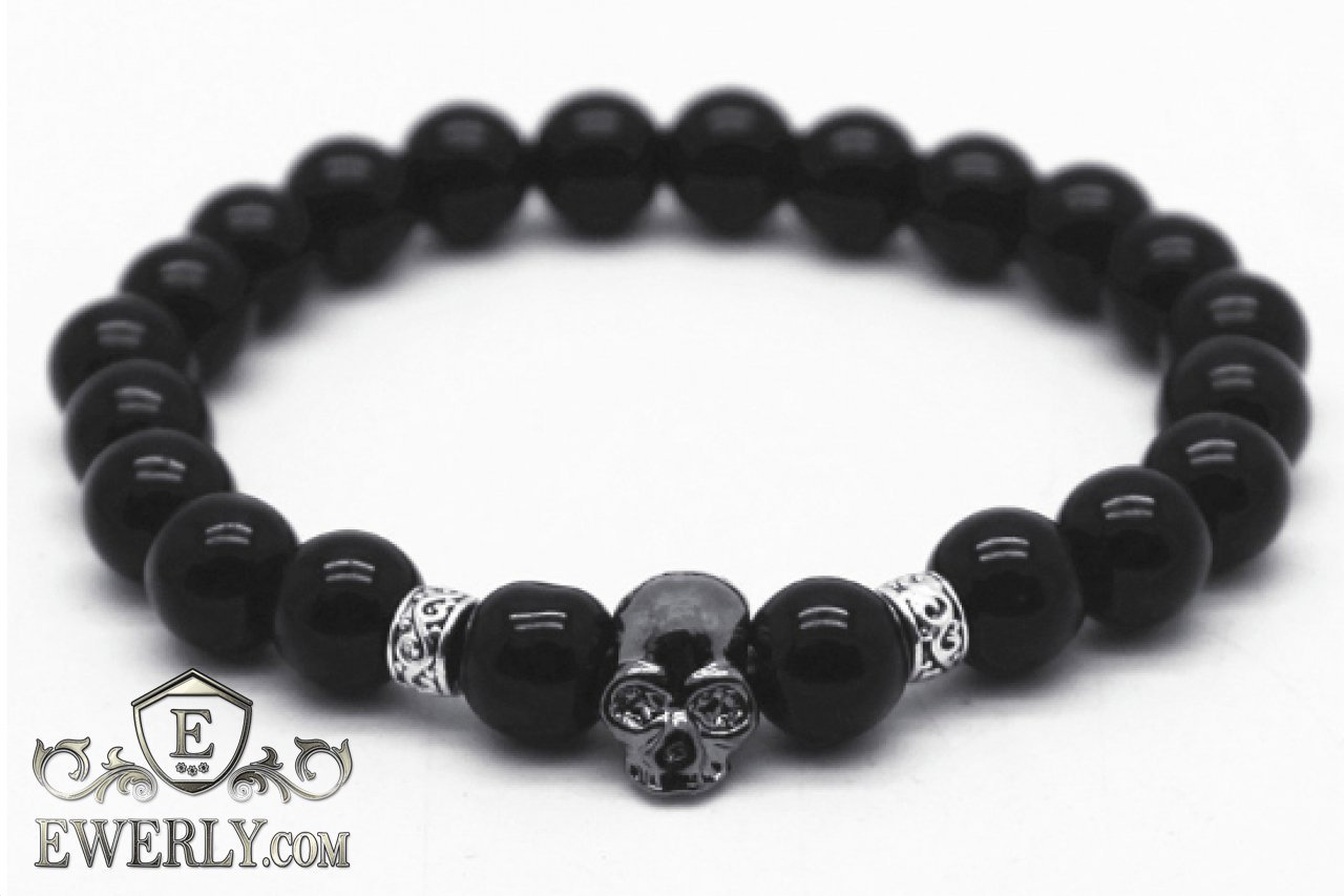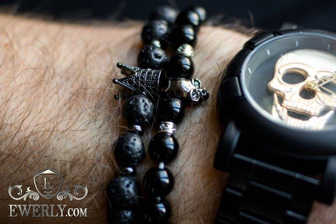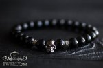 Мужской каменный браслет чёрный (камень Вулканит) 123022FB