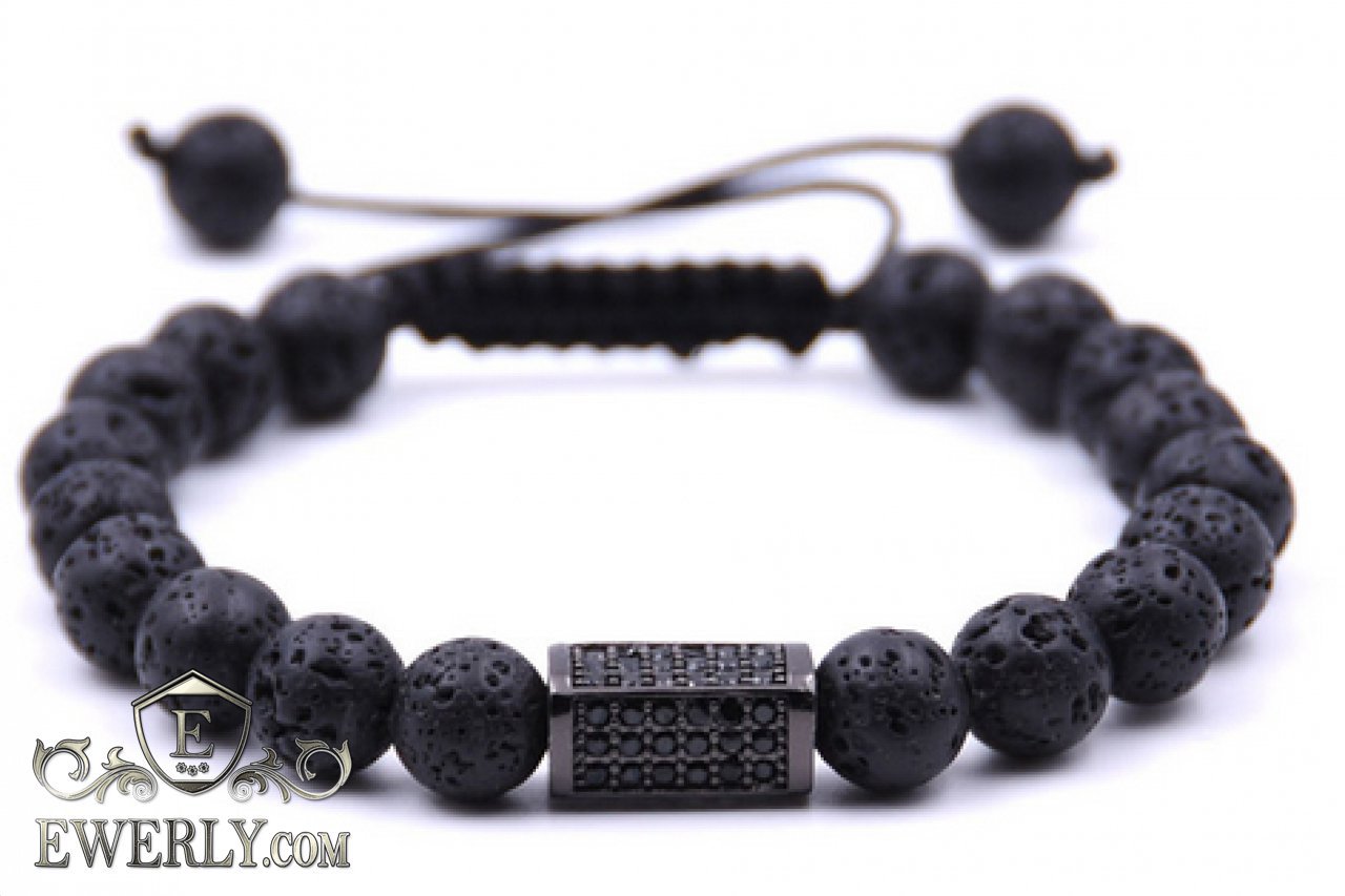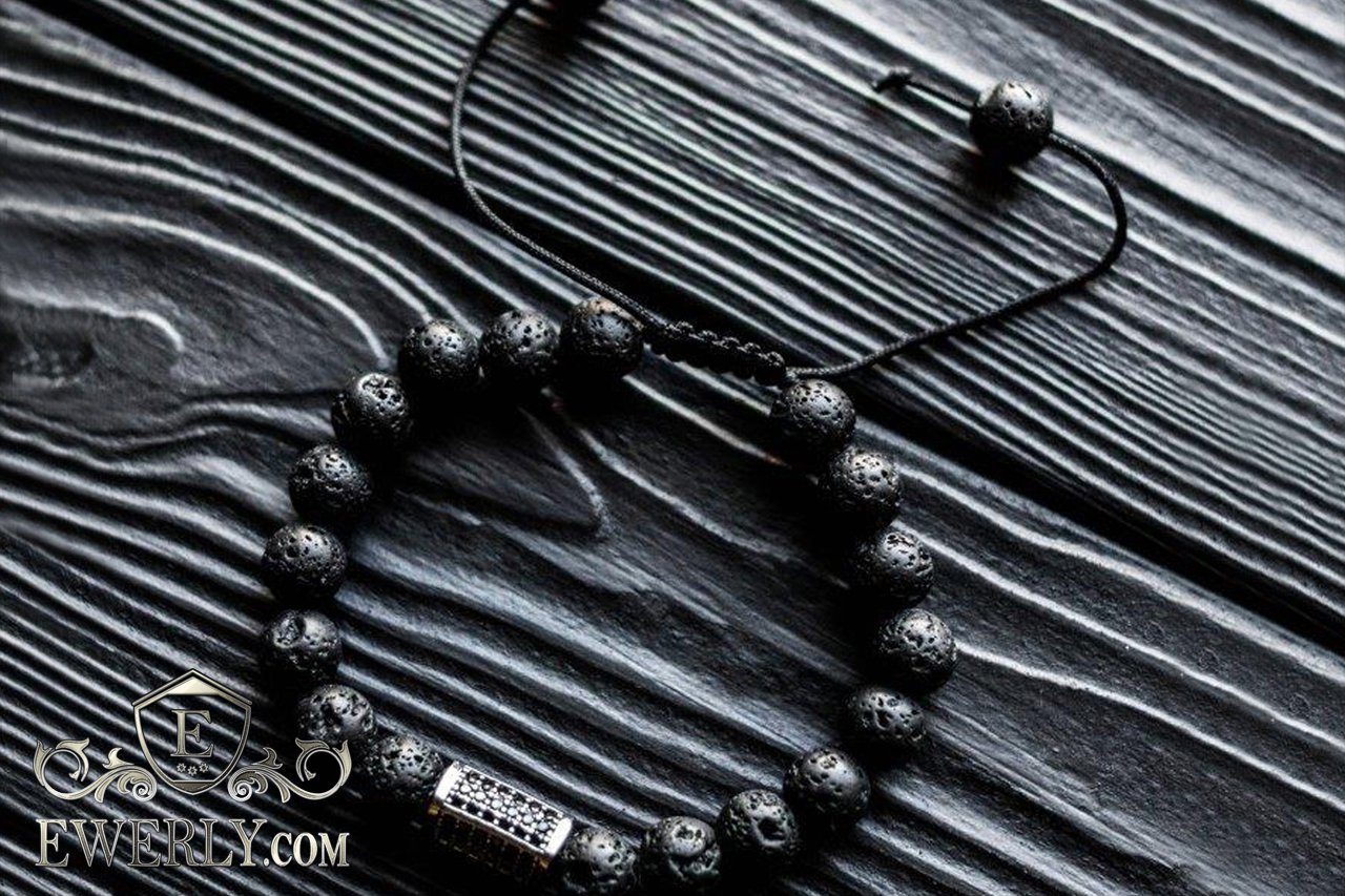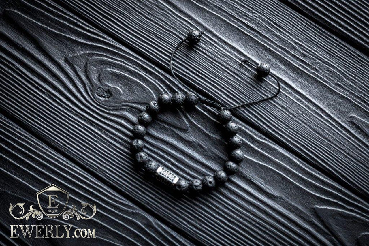 Мужской каменный браслет из натуральной вулканической лавы 123030WZ
