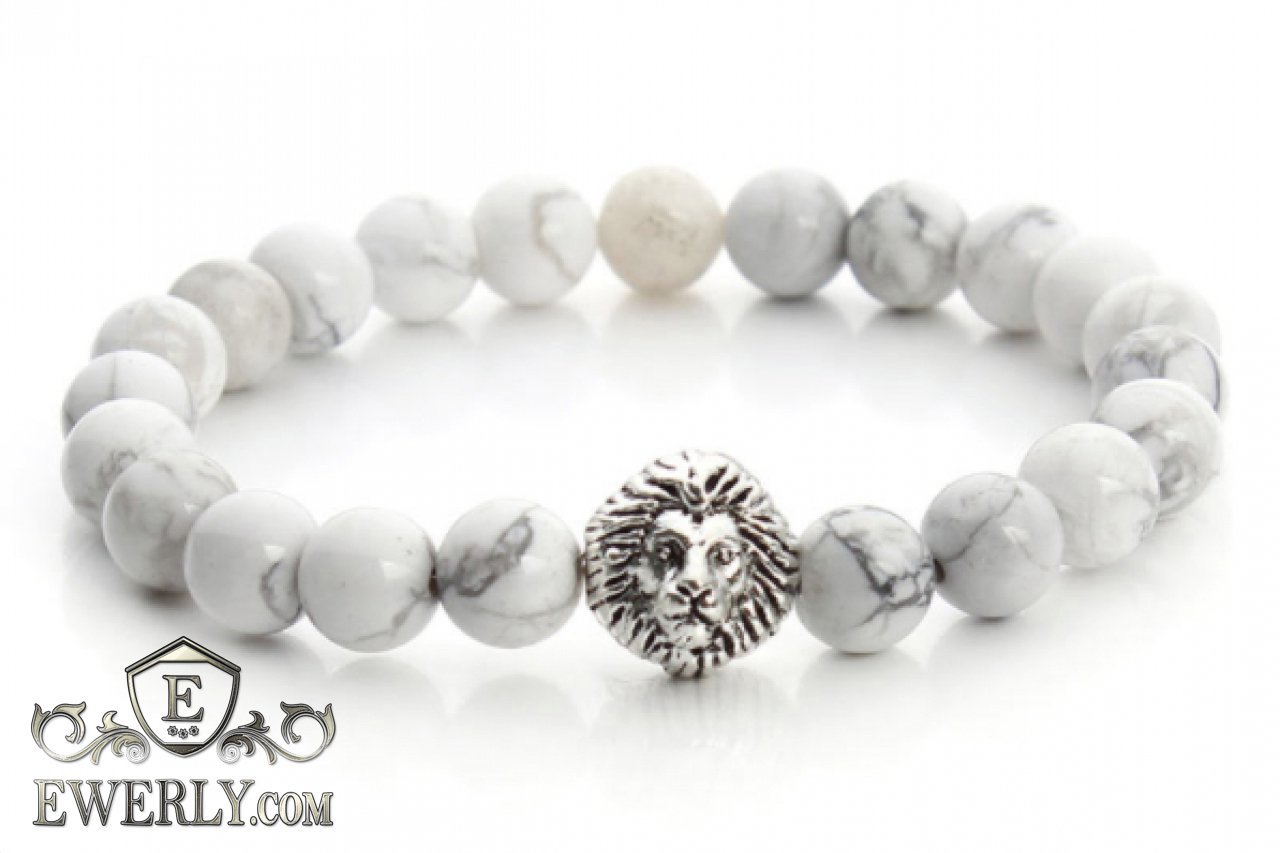 Мужской каменный браслет белый на руку 123007IA