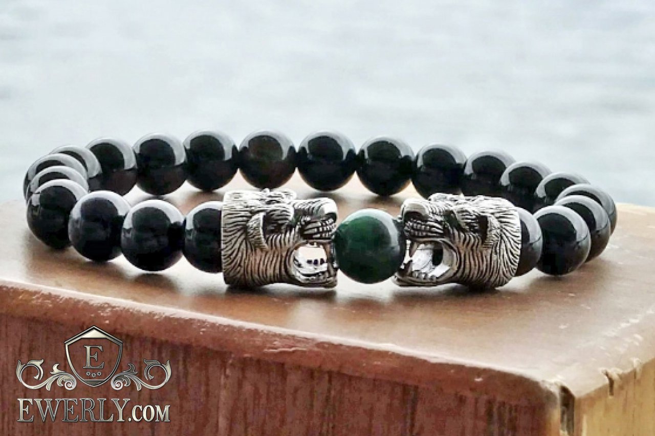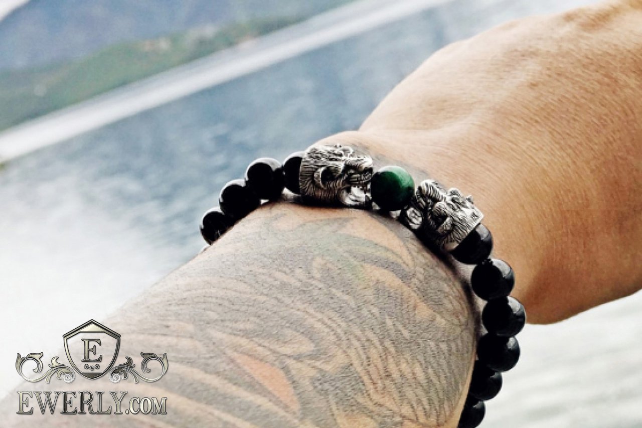 Мужской каменный браслет из вулканической лавы на руку 123058HD