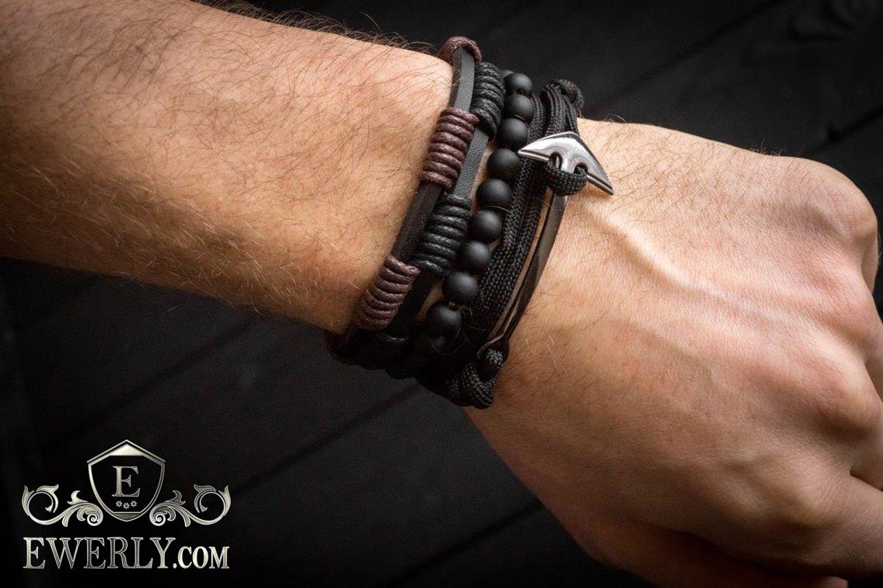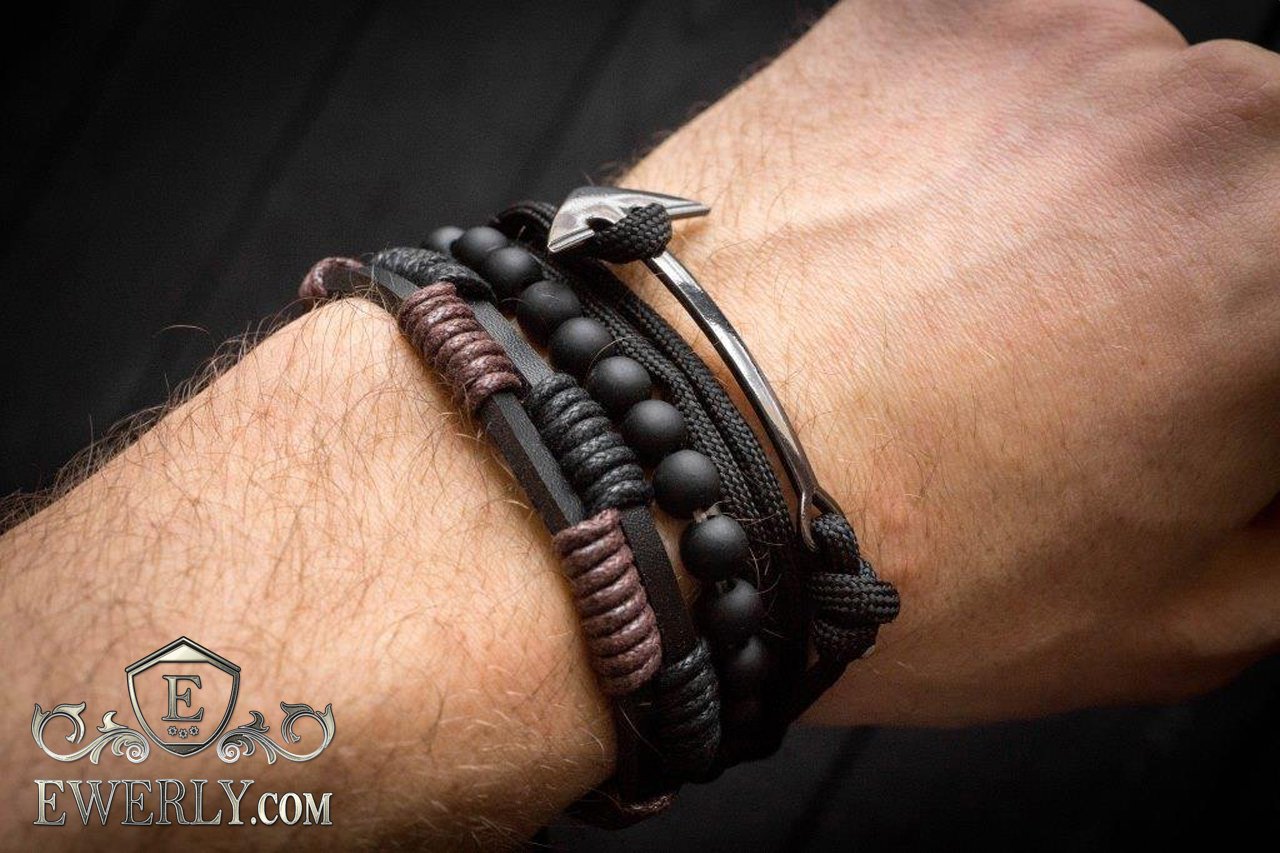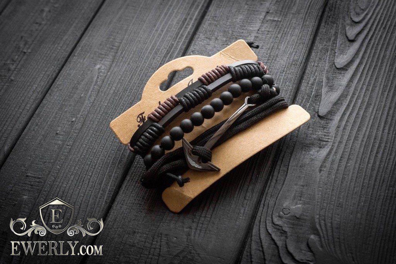 - Браслет на шнурке с металлическим якорем.
