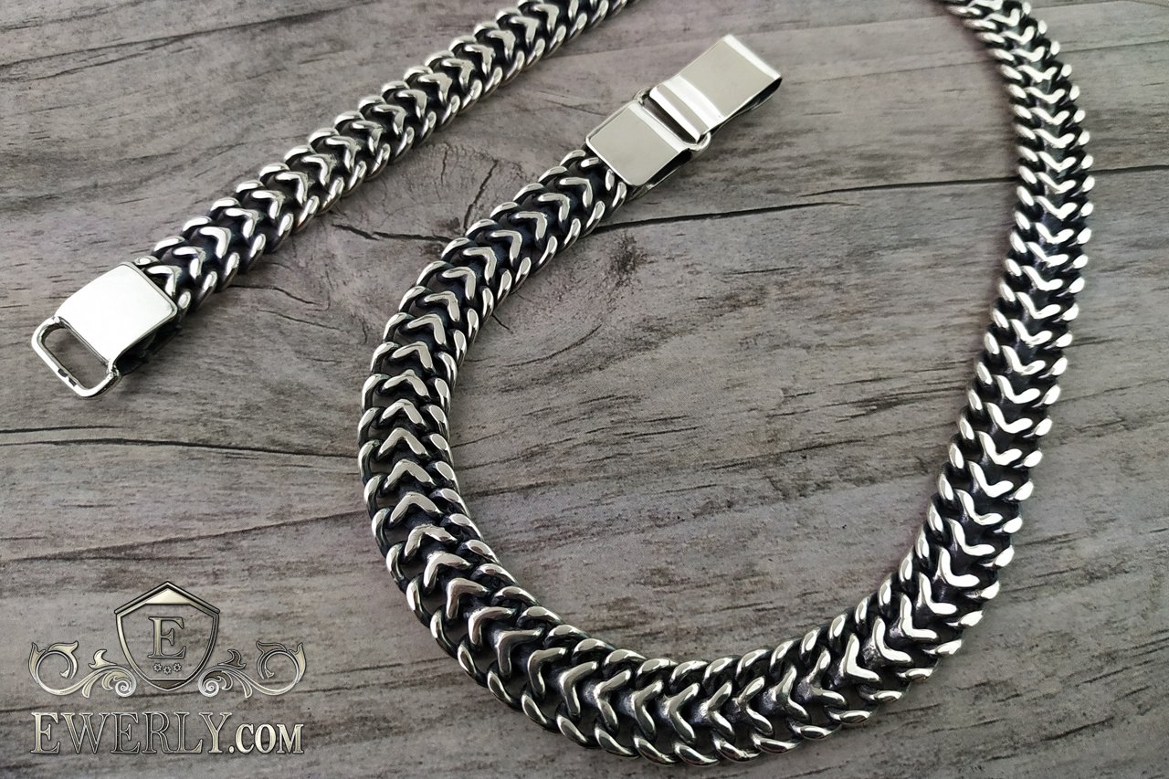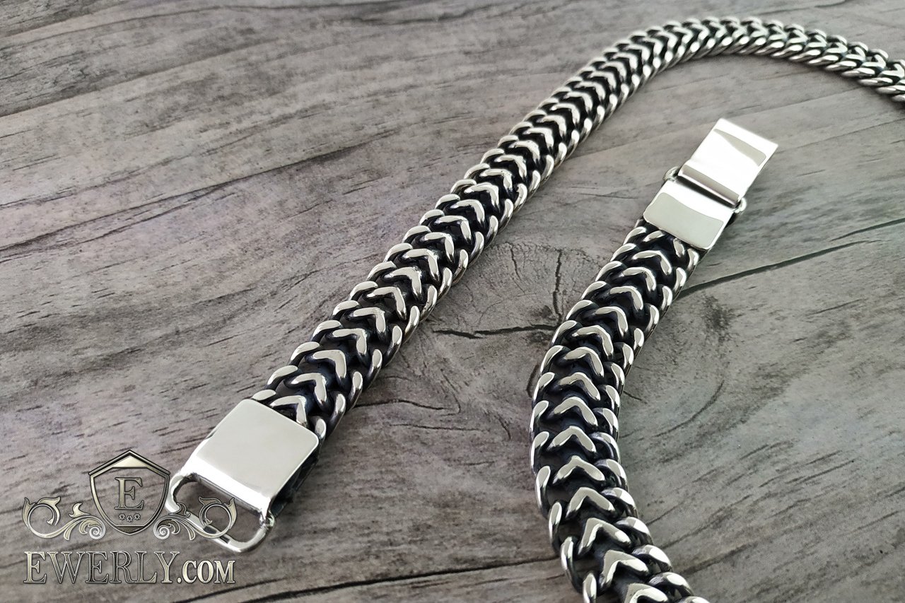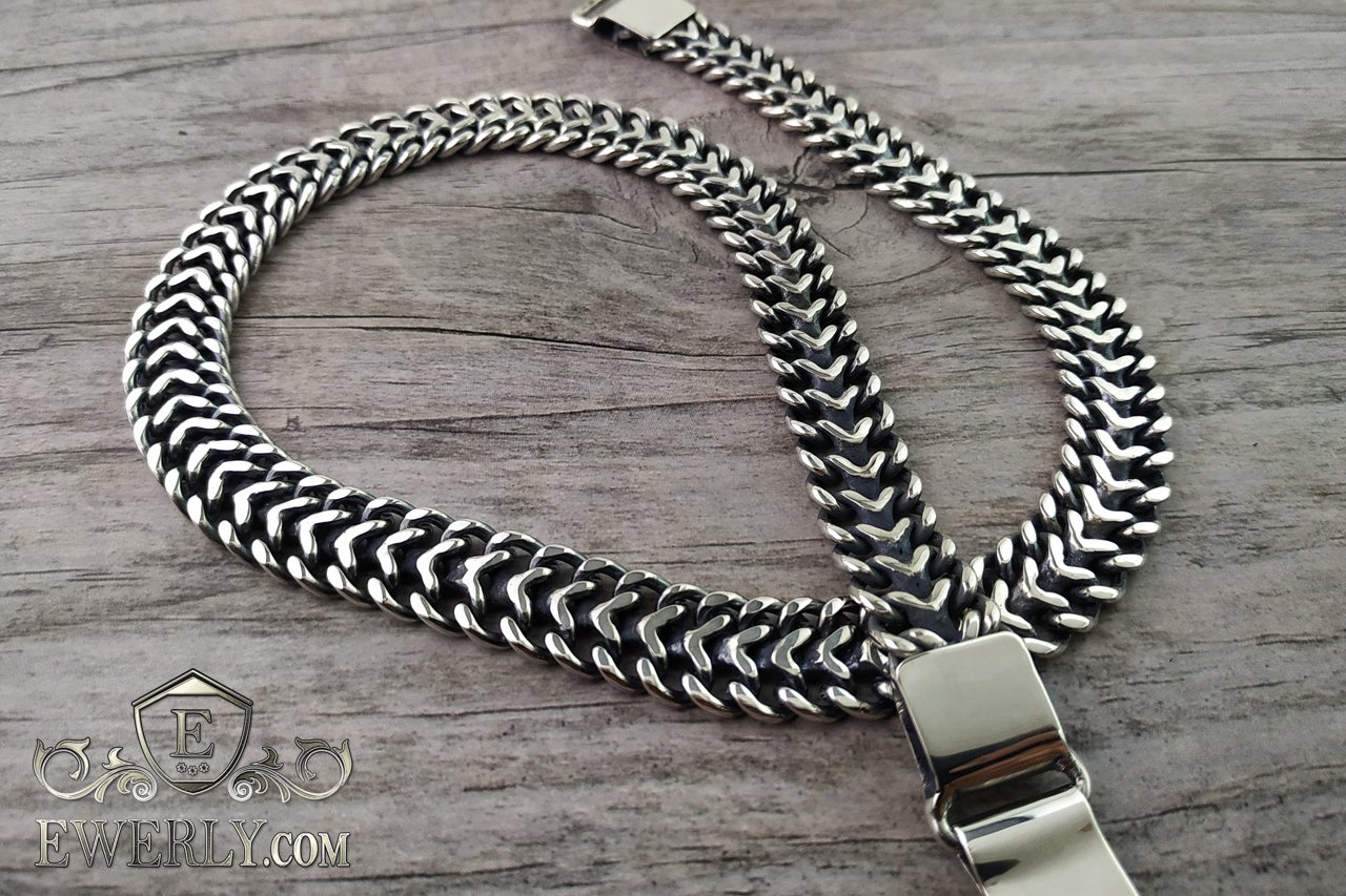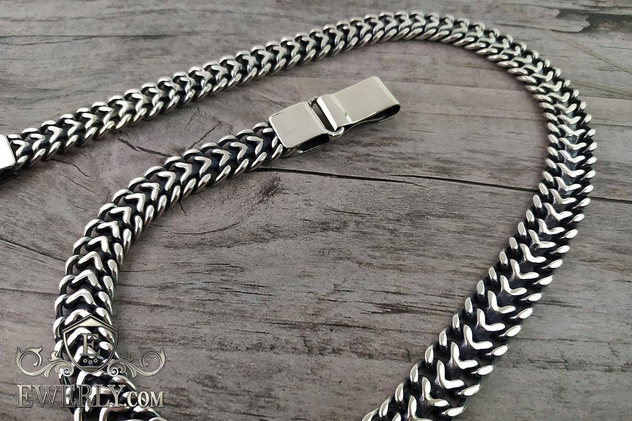 Двойное панцирное плетение Трактор - цепочка из серебра