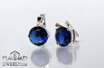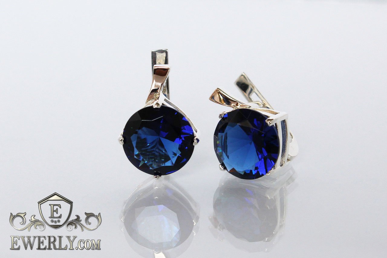 Женские серебряные серёжки с золотыми элементами и синими камнями - фианитами.