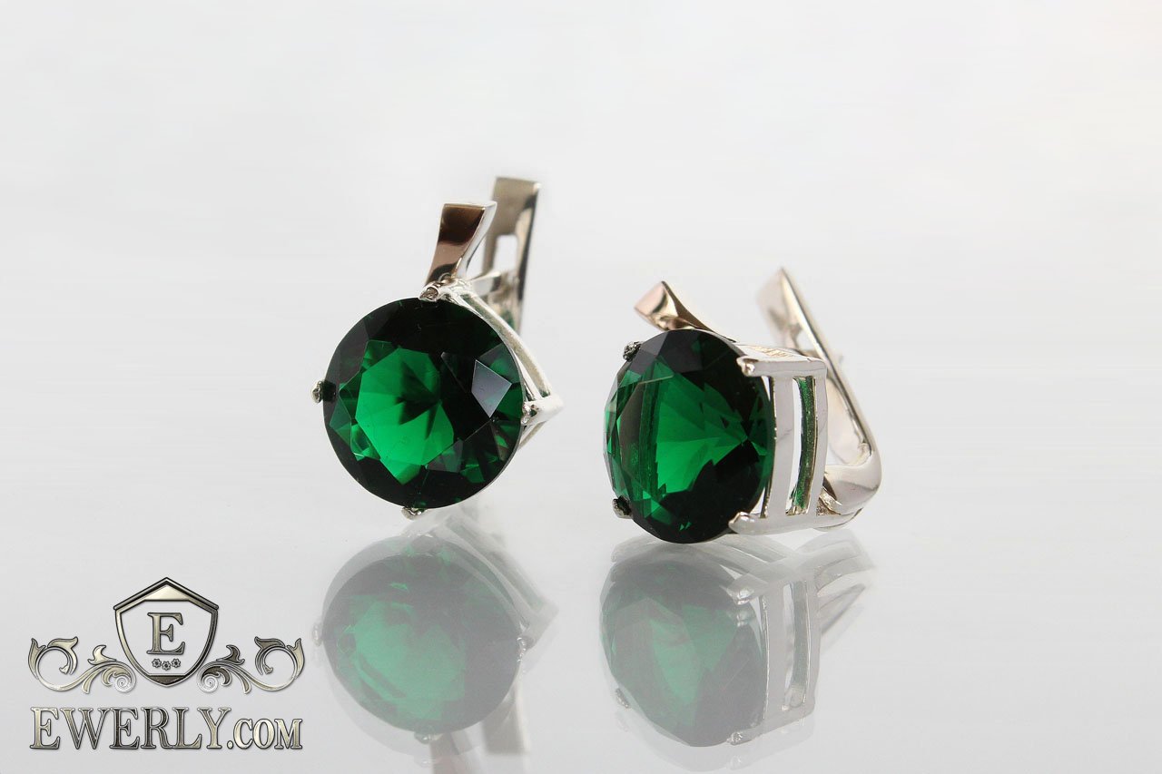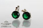Женские серебряные серёжки с золотыми элементами и зелёными камнями - фианитами.