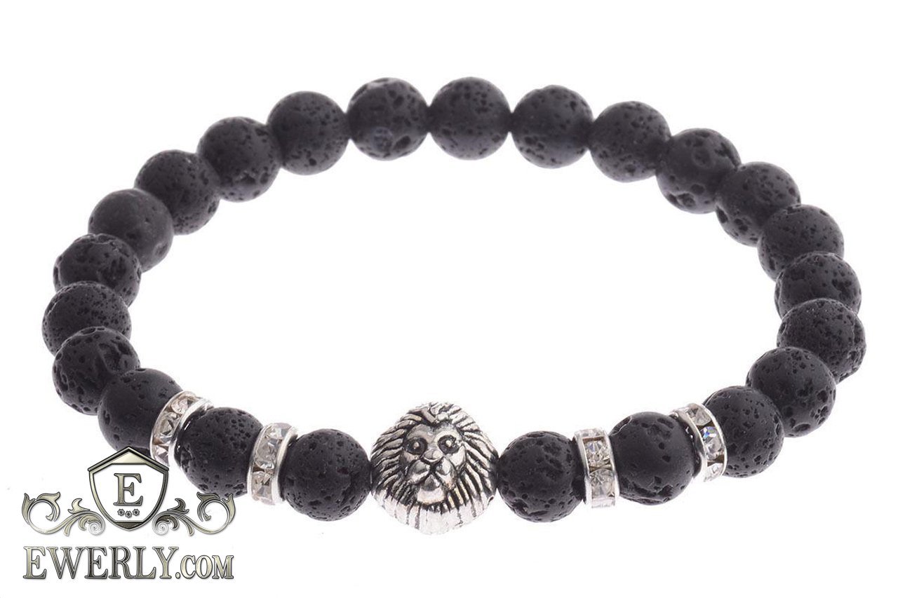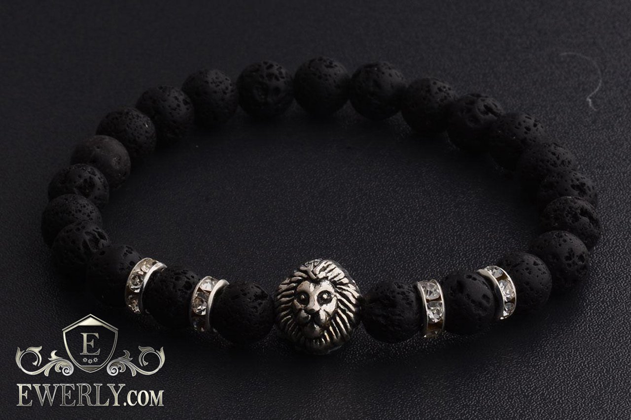 Браслет из камня вулканической лавы для мужчины 123013AB