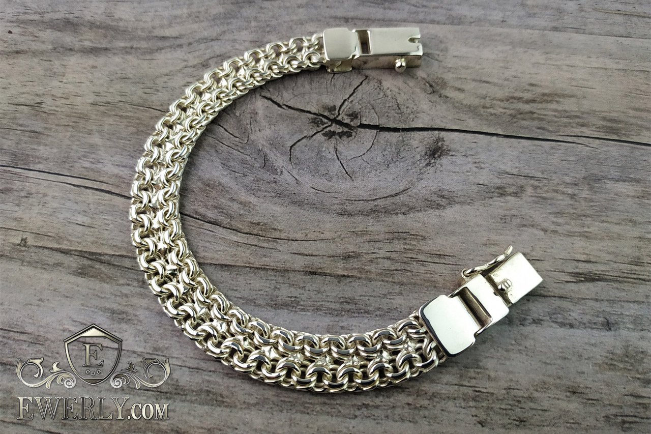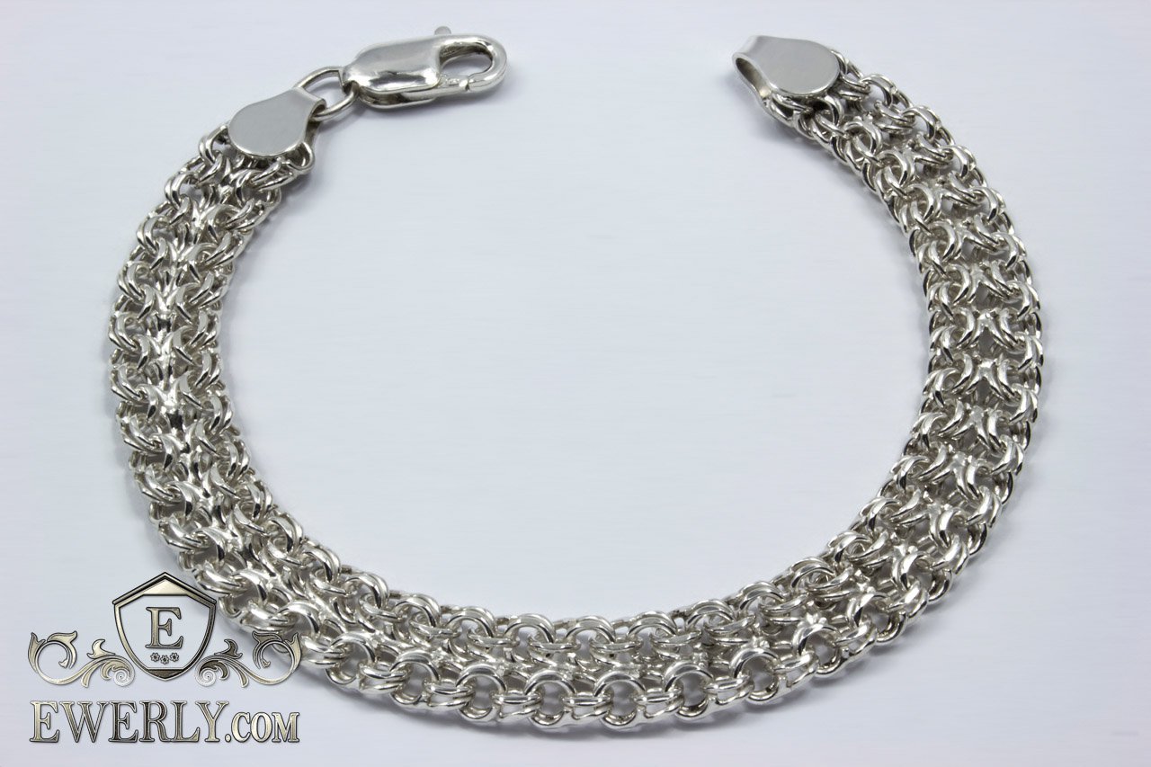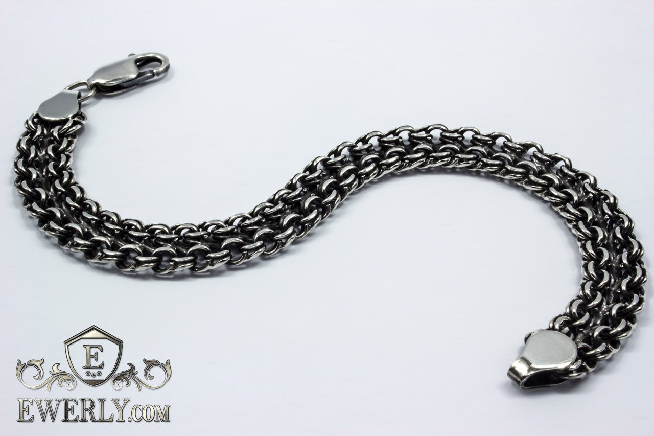 Плетение Двойной бисмарк - мужской браслет из серебра
