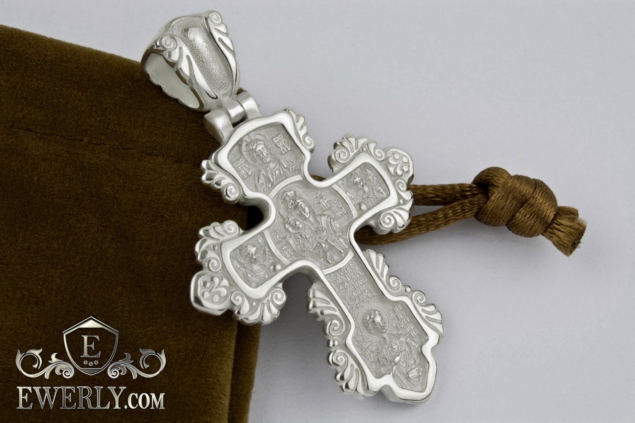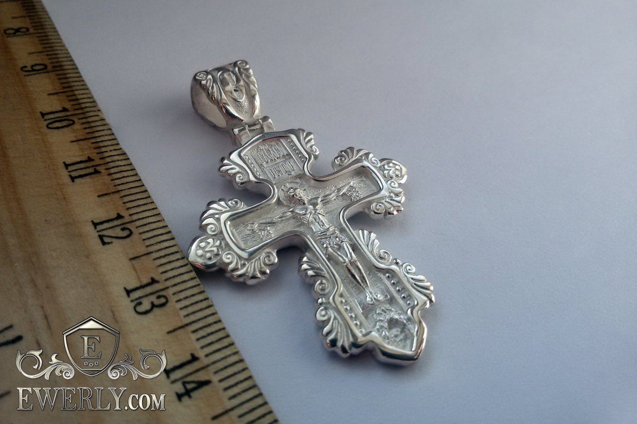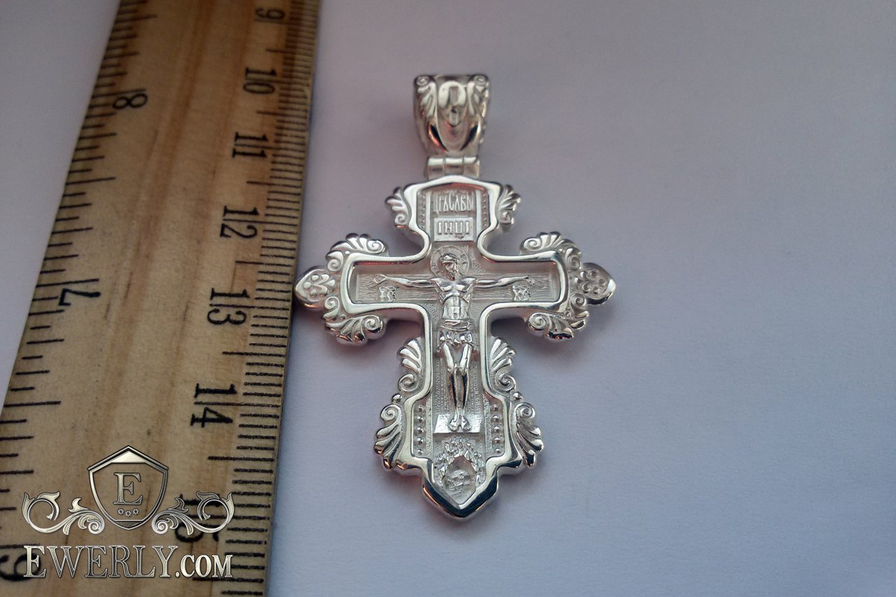 На лицевой стороне креста изображено Распятие Иисуса Христа.