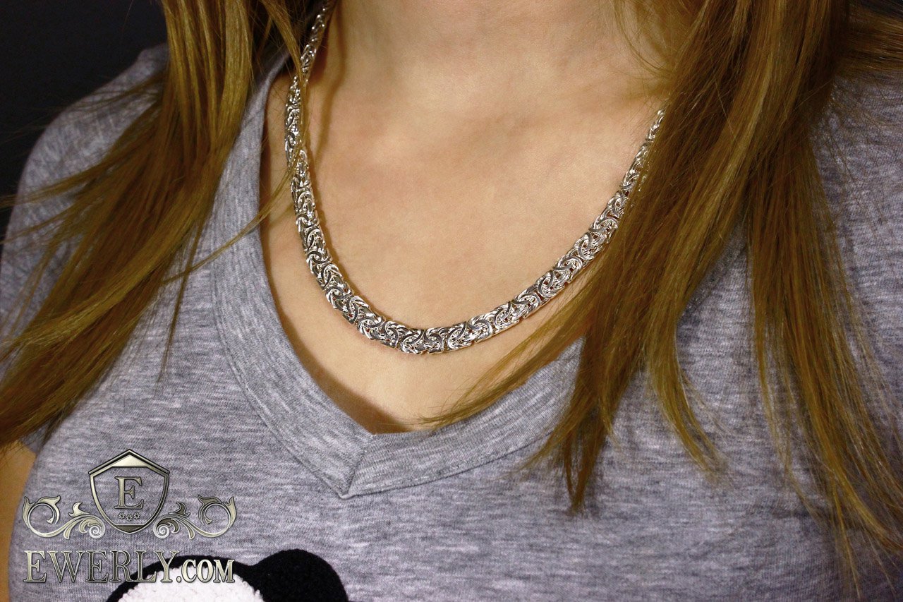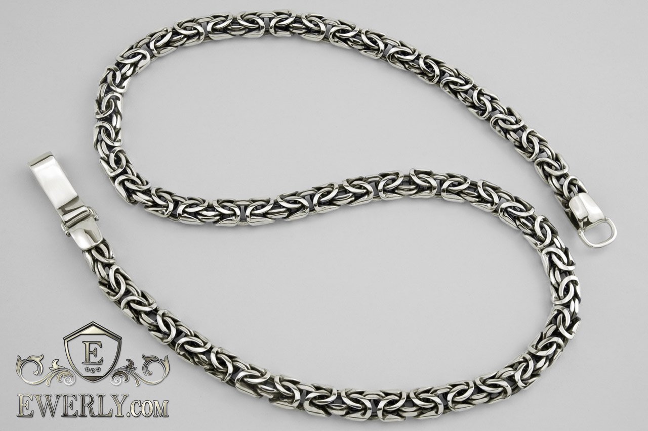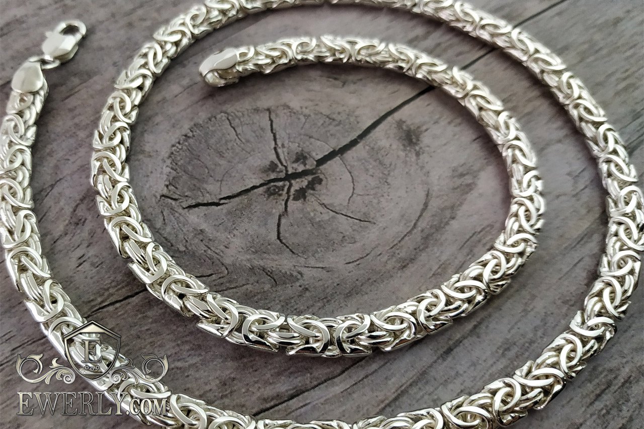 Полновесная серебряная цепочка на шею. Данное плетение достаточно трудоёмкое в исполнении, и большинство ювелиров не обладают достаточным уровнем навыков в изготовлении, чтобы достичь высокого качества украшений, не говоря уже о том, чтобы просто изготовить. На текущий момент качество наших работ из этого плетения существенно превосходит большинство других производителей.