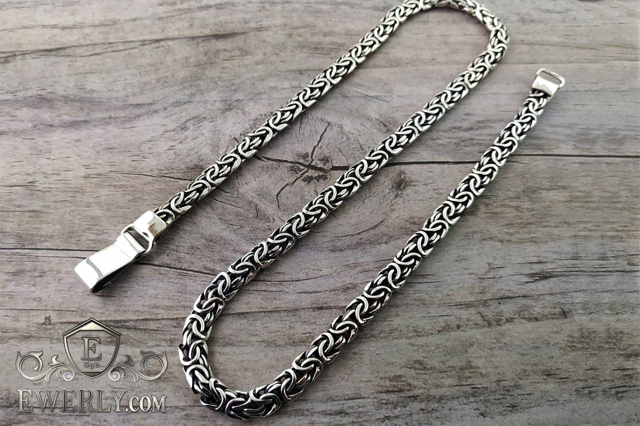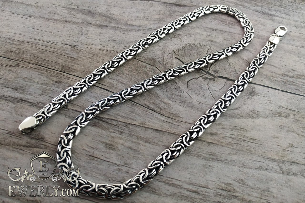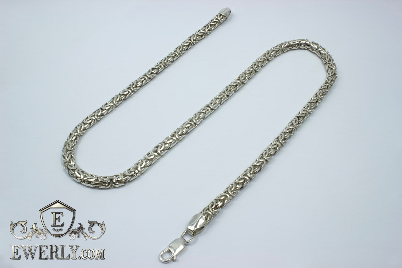 Полновесная серебряная цепочка на шею. Данное плетение достаточно трудоёмкое в исполнении, и большинство ювелиров не обладают достаточным уровнем навыков в изготовлении, чтобы достичь высокого качества украшений, не говоря уже о том, чтобы просто изготовить. На текущий момент качество наших работ из этого плетения существенно превосходит большинство других производителей.