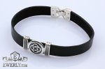 Мужской браслет из натуральной кожи с серебряным замком и серебряной вставкой.