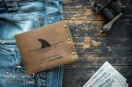Полностью выполнен из натуральной кожи и металлических заклепок. Эксклюзивный мужской кошелёк ручной работы с плавником акулы и текстом "LIVE EVERY WEEK LIKE IT'S SHARK WEEK", в переводе на русский "Жить каждую неделю как будто это неделя акулы", имеет эффект потёртости и лёгкой небрежности. Рисунок нанесён на кожу с помощью лазера (лазерная гравировка). Изготовлен в ограниченном выпуске.